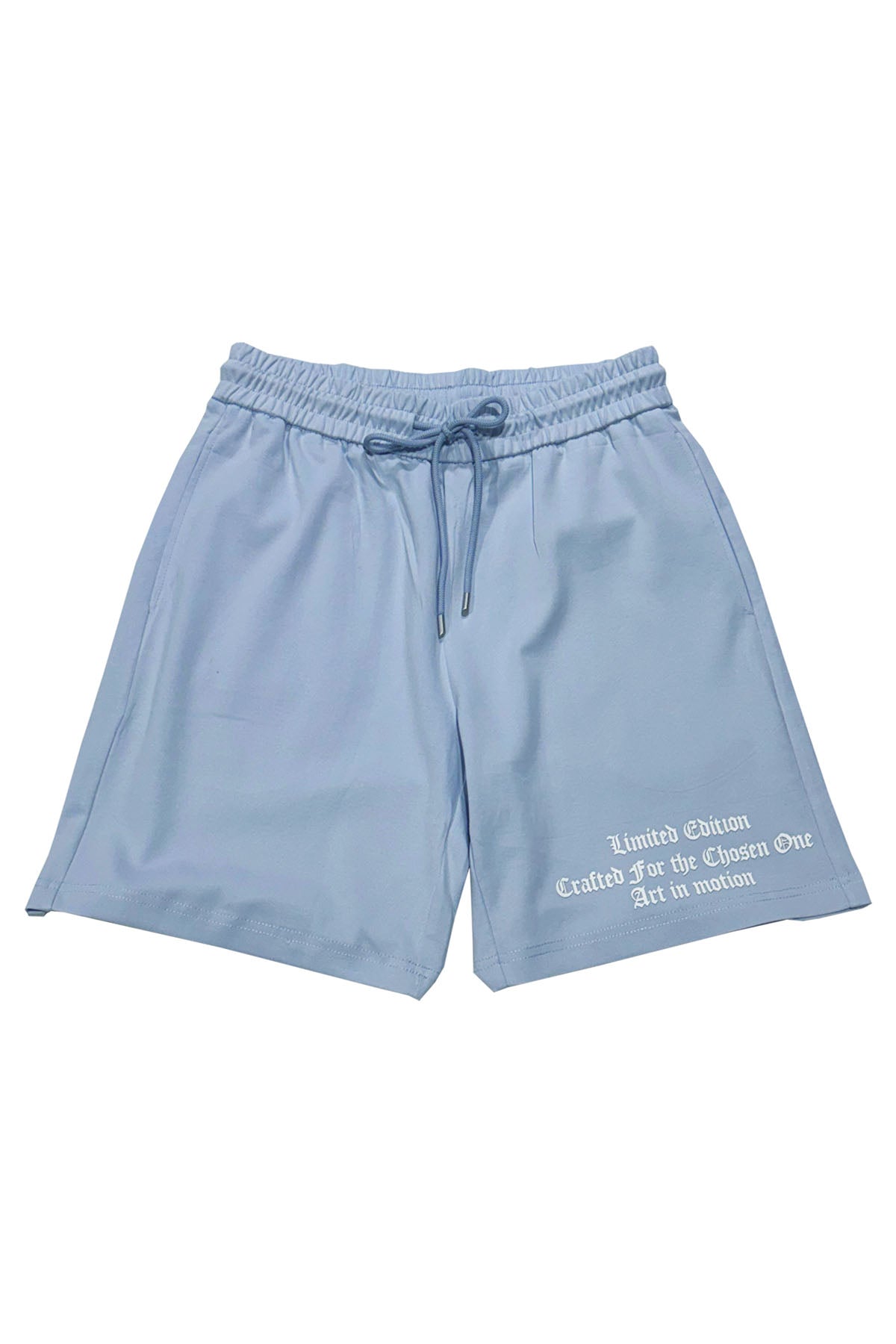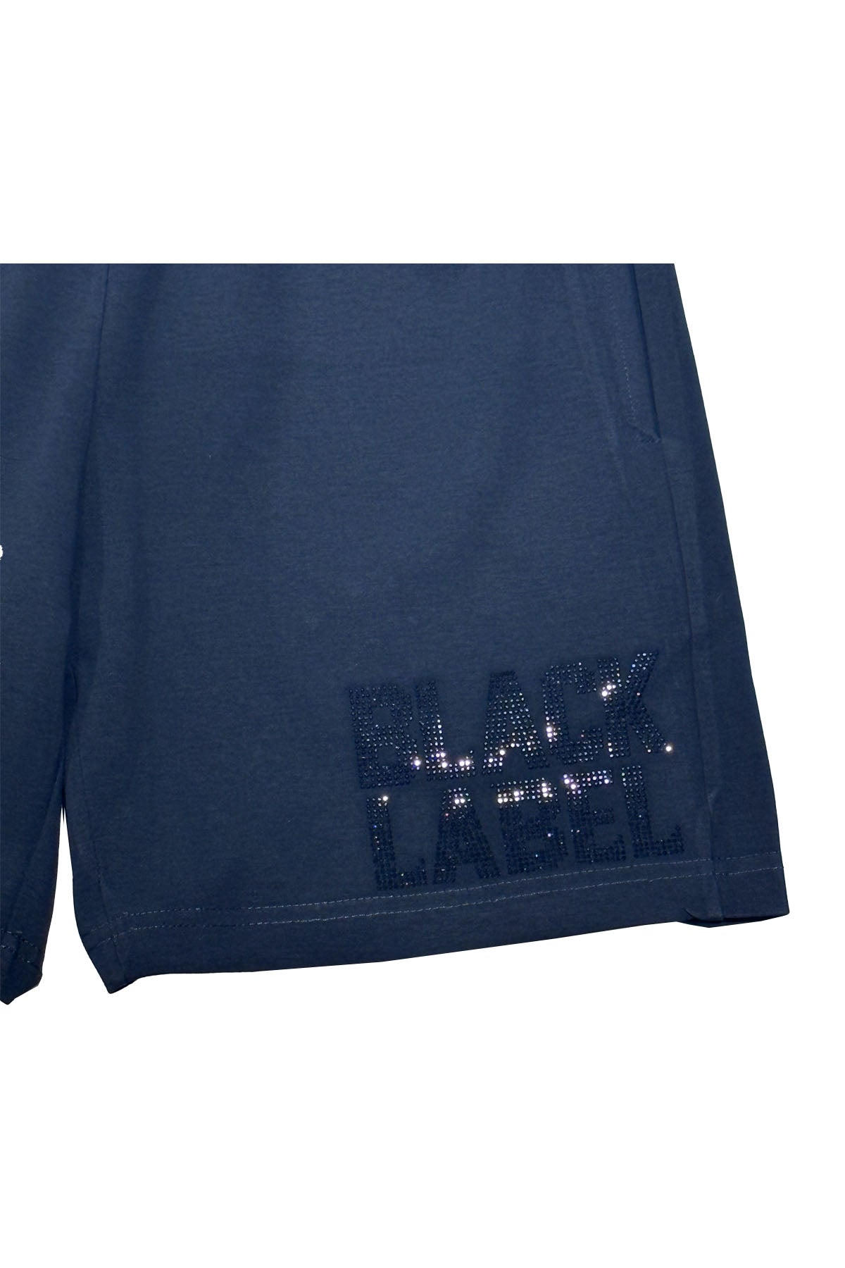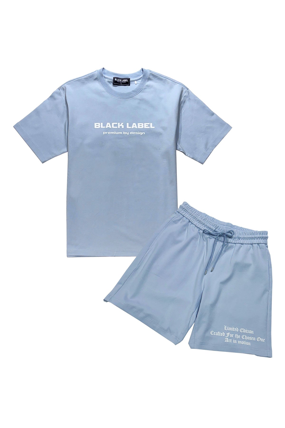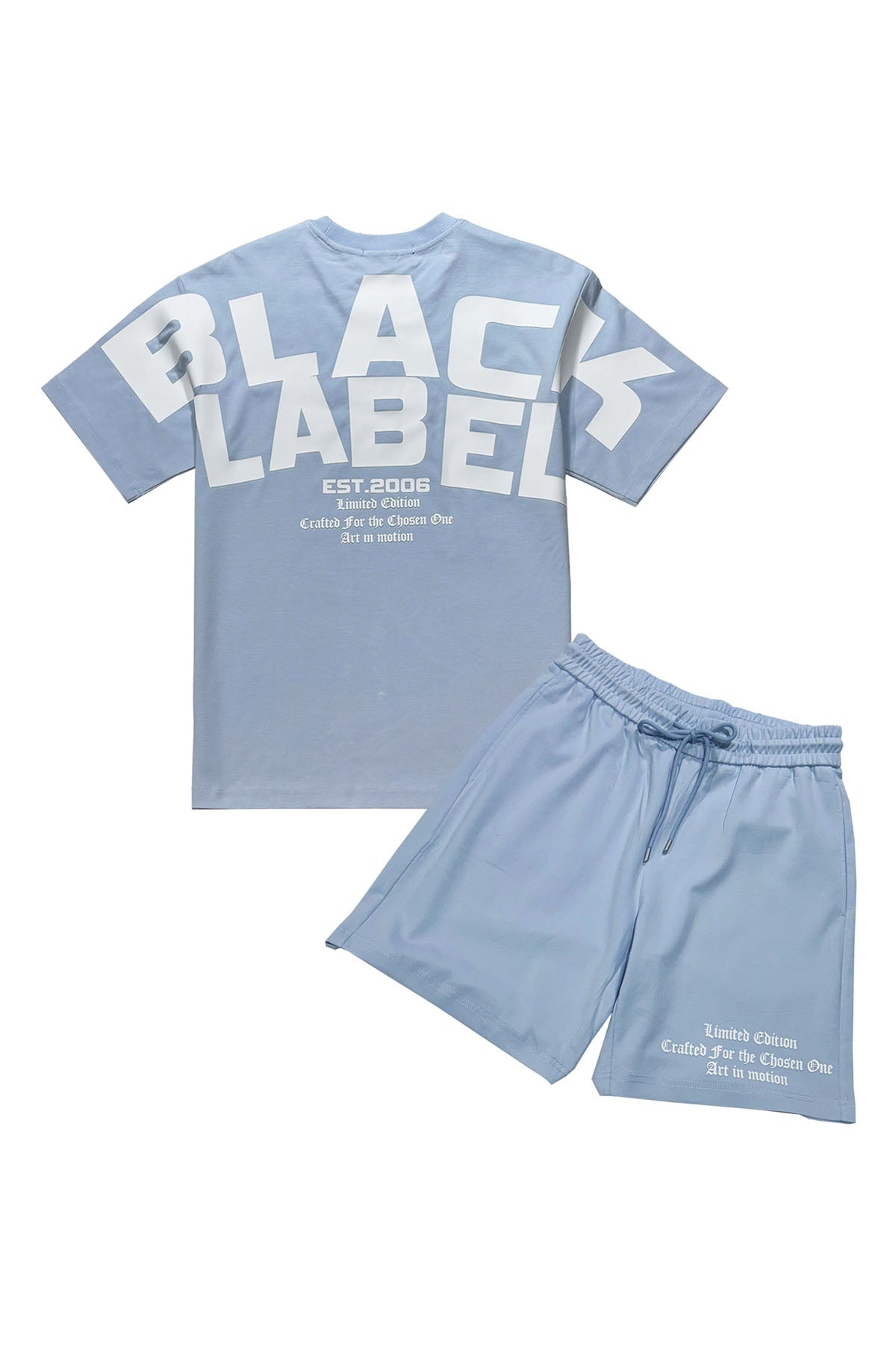 Kids Black Label Light Blue Bling Crew Neck T-Shirt and Cotton Shorts Set