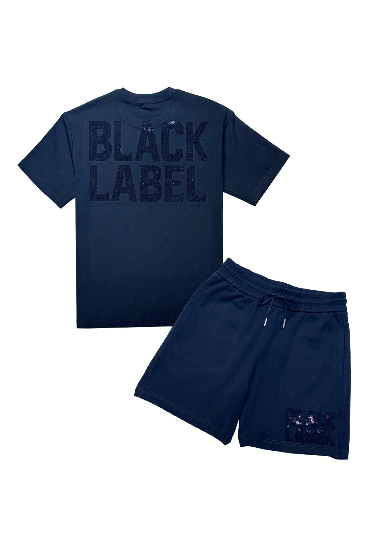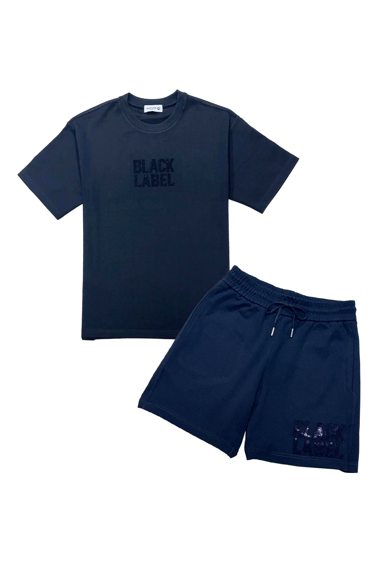 Men Black Label BL2 Black Bling T-Shirt and Cotton Shorts Set