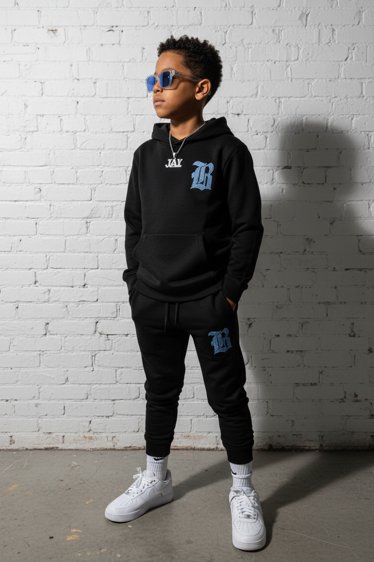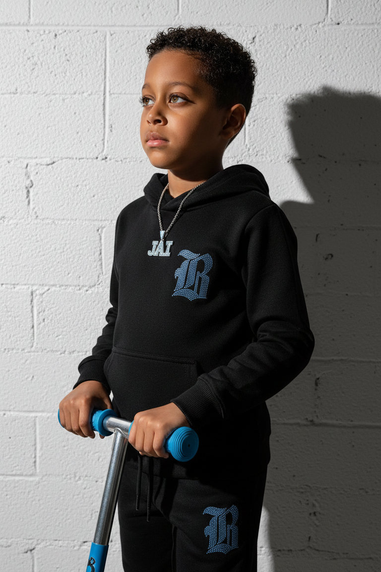 Kids Black Label Light Blue Bling Hoodie and Jogger Set