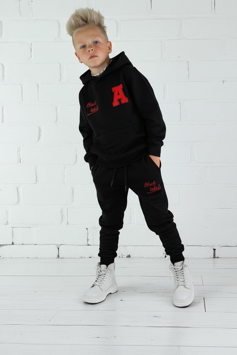 Kids Black Label Red Bling Hoodie and Jogger Set