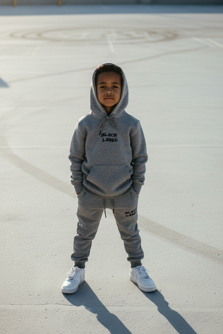 Kids Black Label Dept Black Silicone Hoodie and Jogger Set