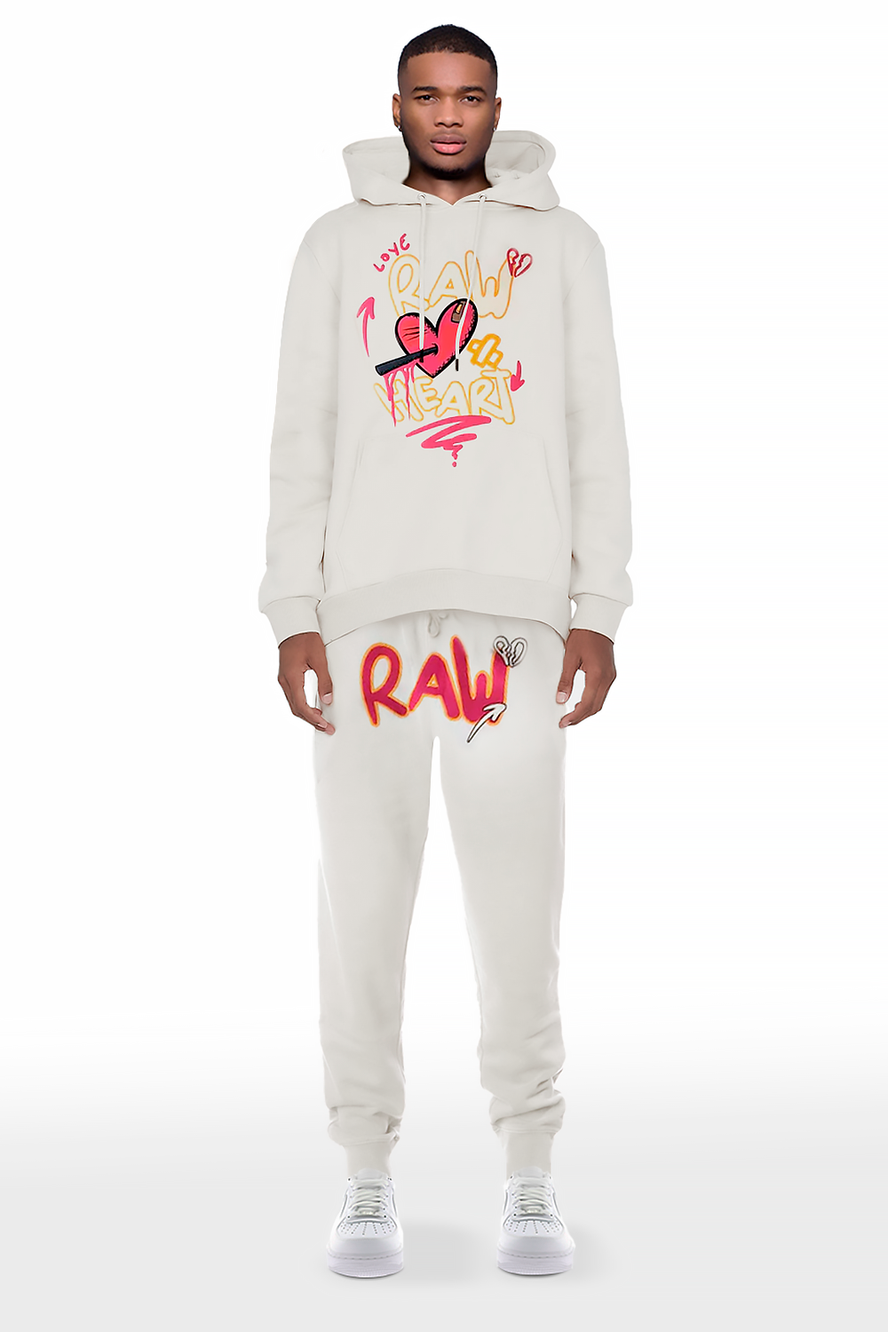 Men Broken Heart Puff Print Hoodie and Joggers Set