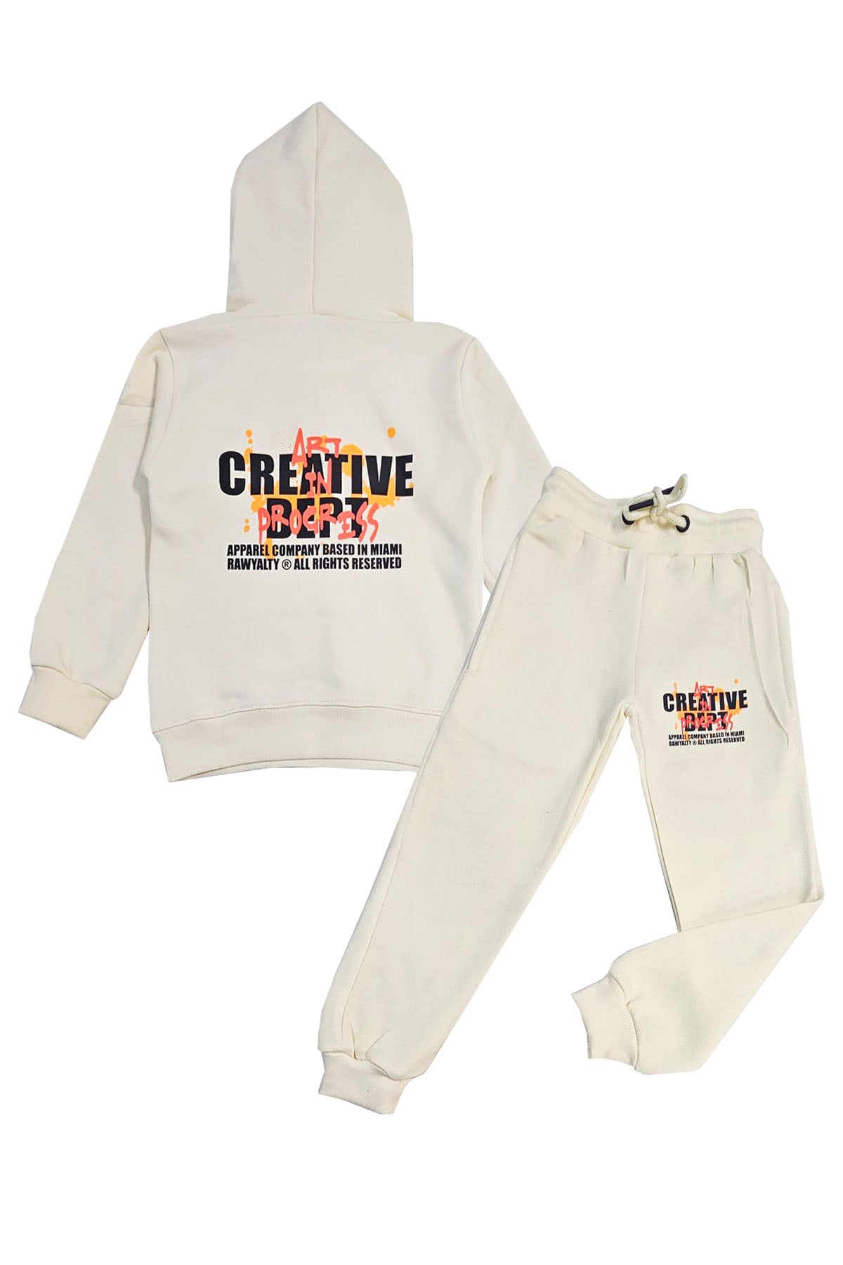 Rawyalty hoodie and jogger set with original graphic artwork on front.