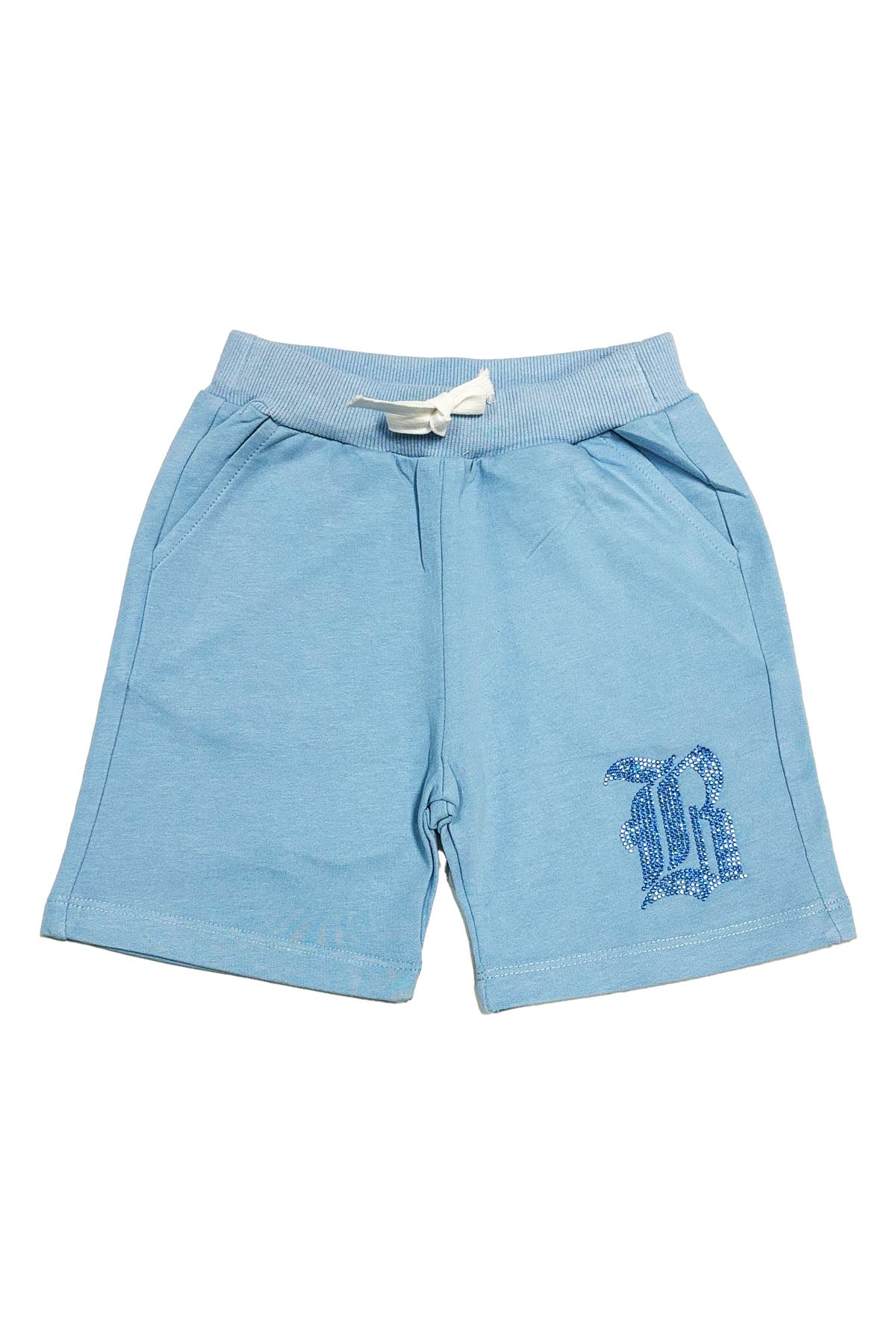 Kids Black Label "B" Light Blue Bling Cotton Shorts