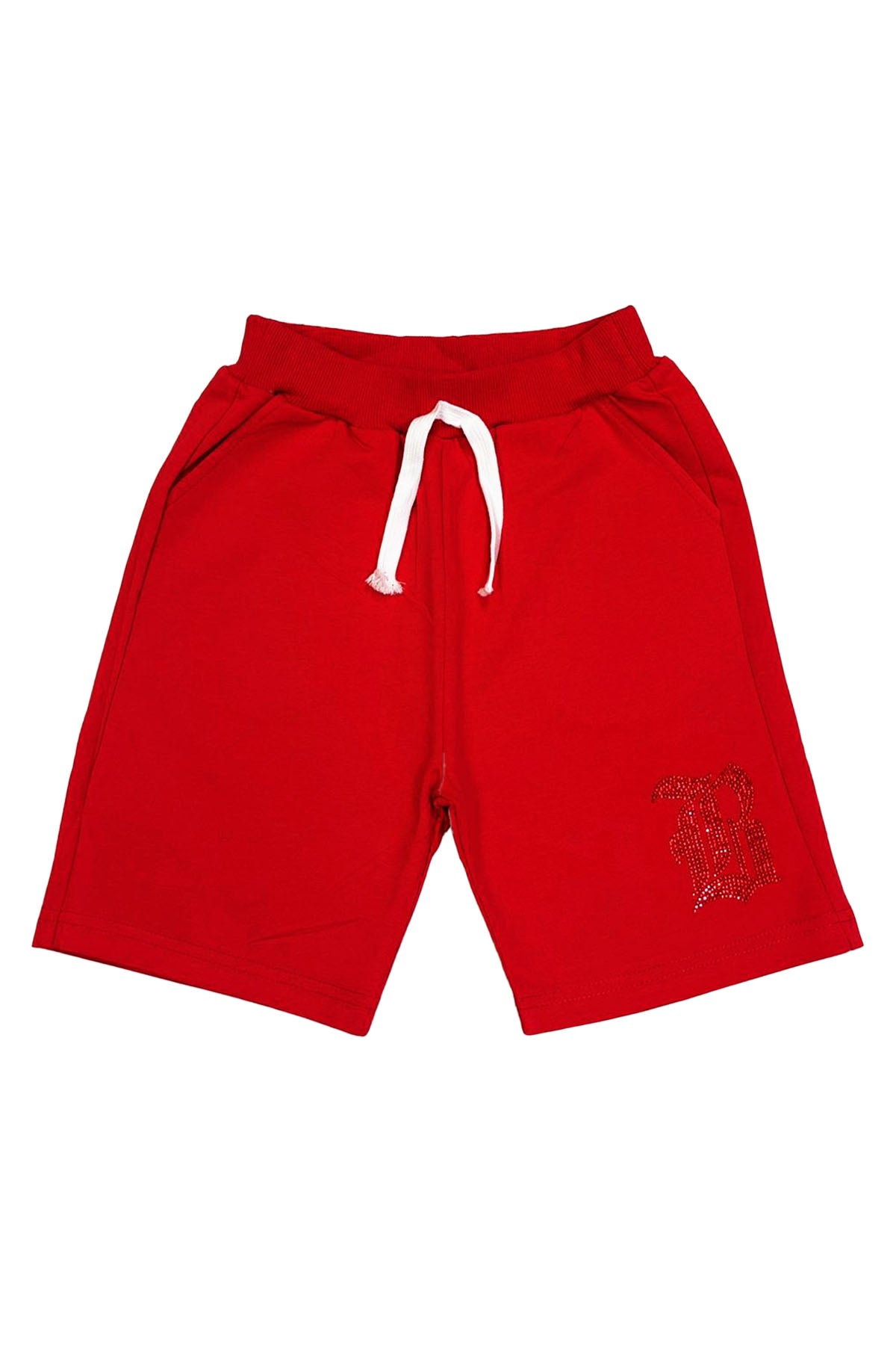 Kids Black Label "B" Red Bling Cotton Shorts