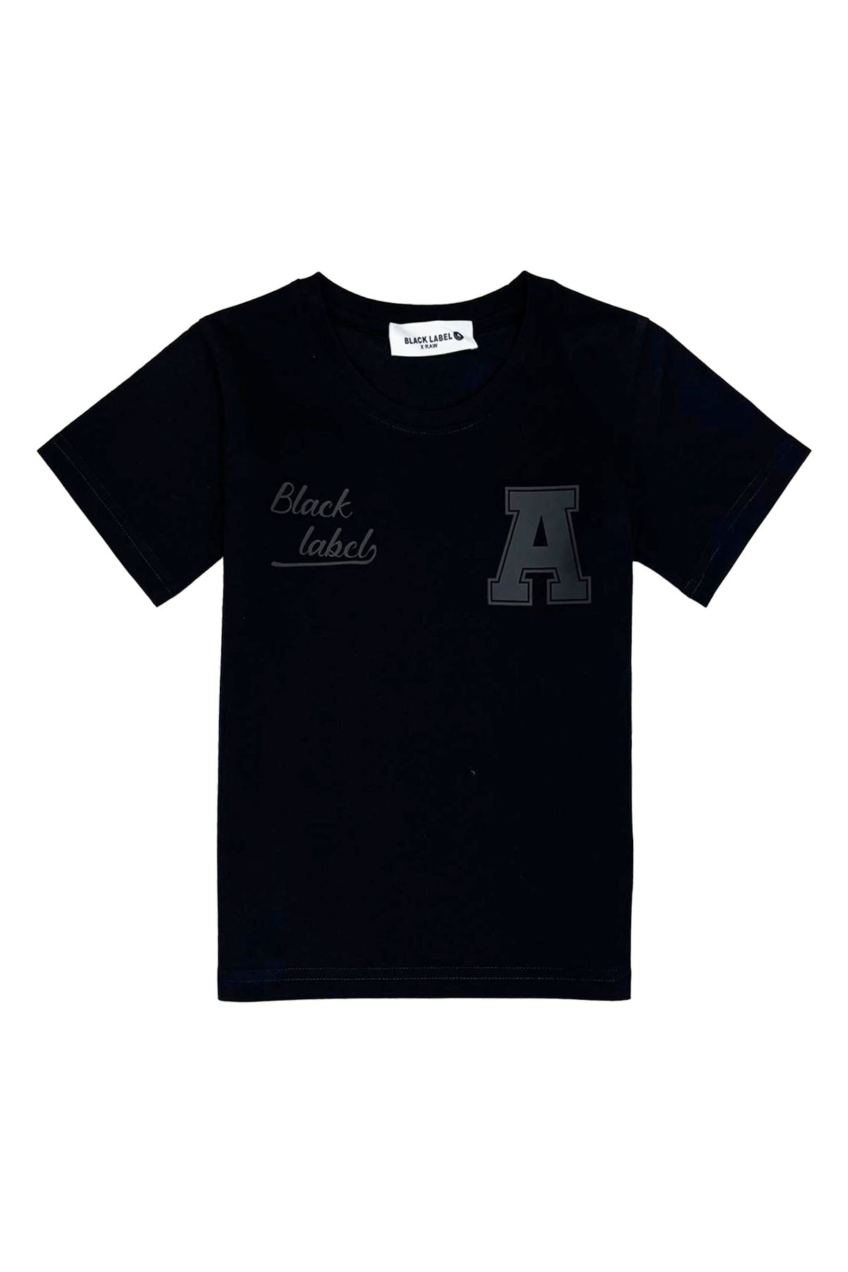 Kids Black Label Dept Black Silicone Crew Neck T-Shirt