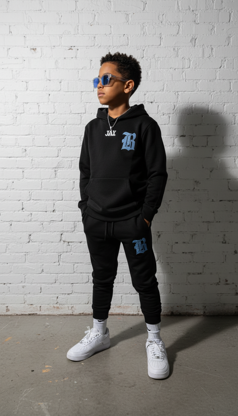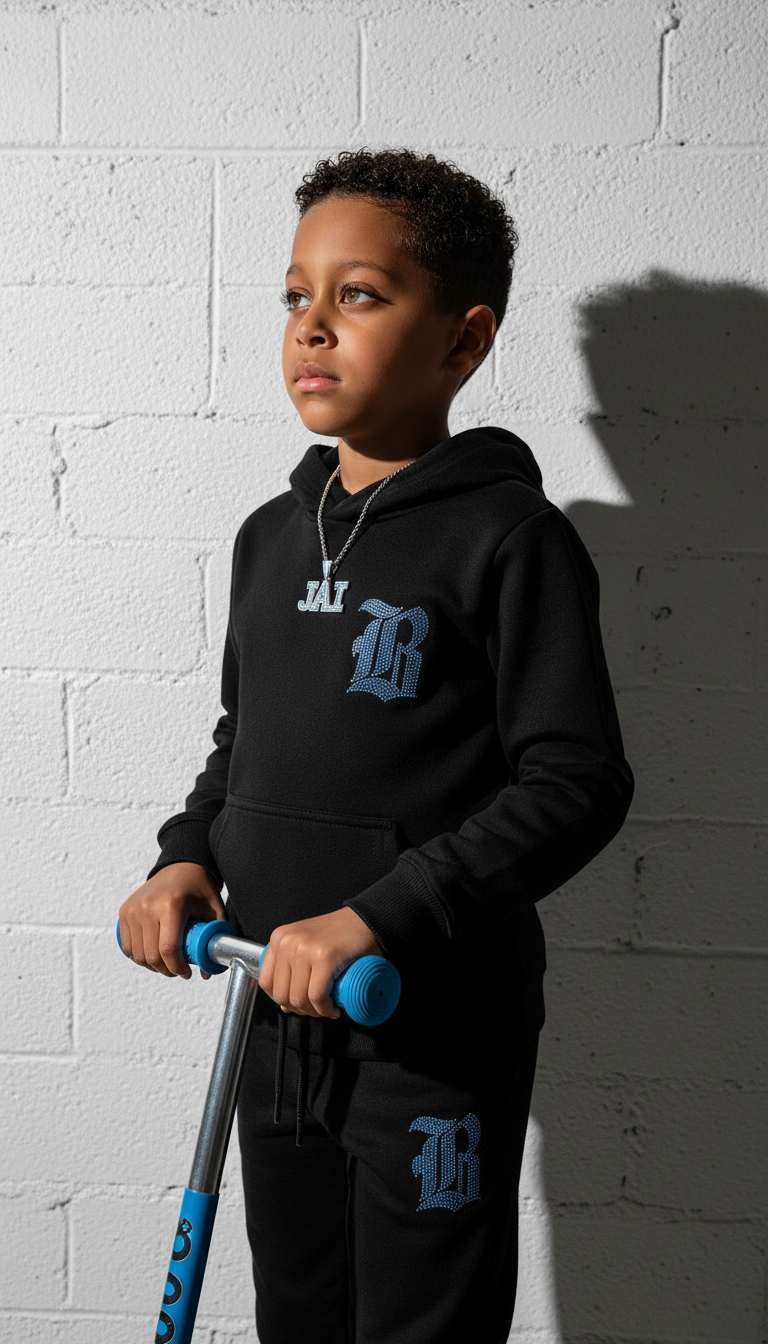 Kids Black Label Light Blue Bling Hoodie and Jogger Set