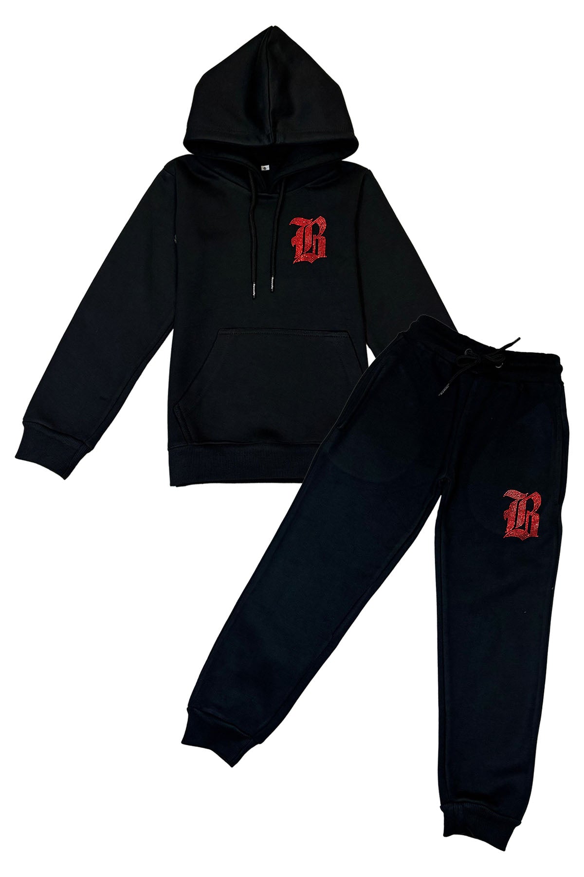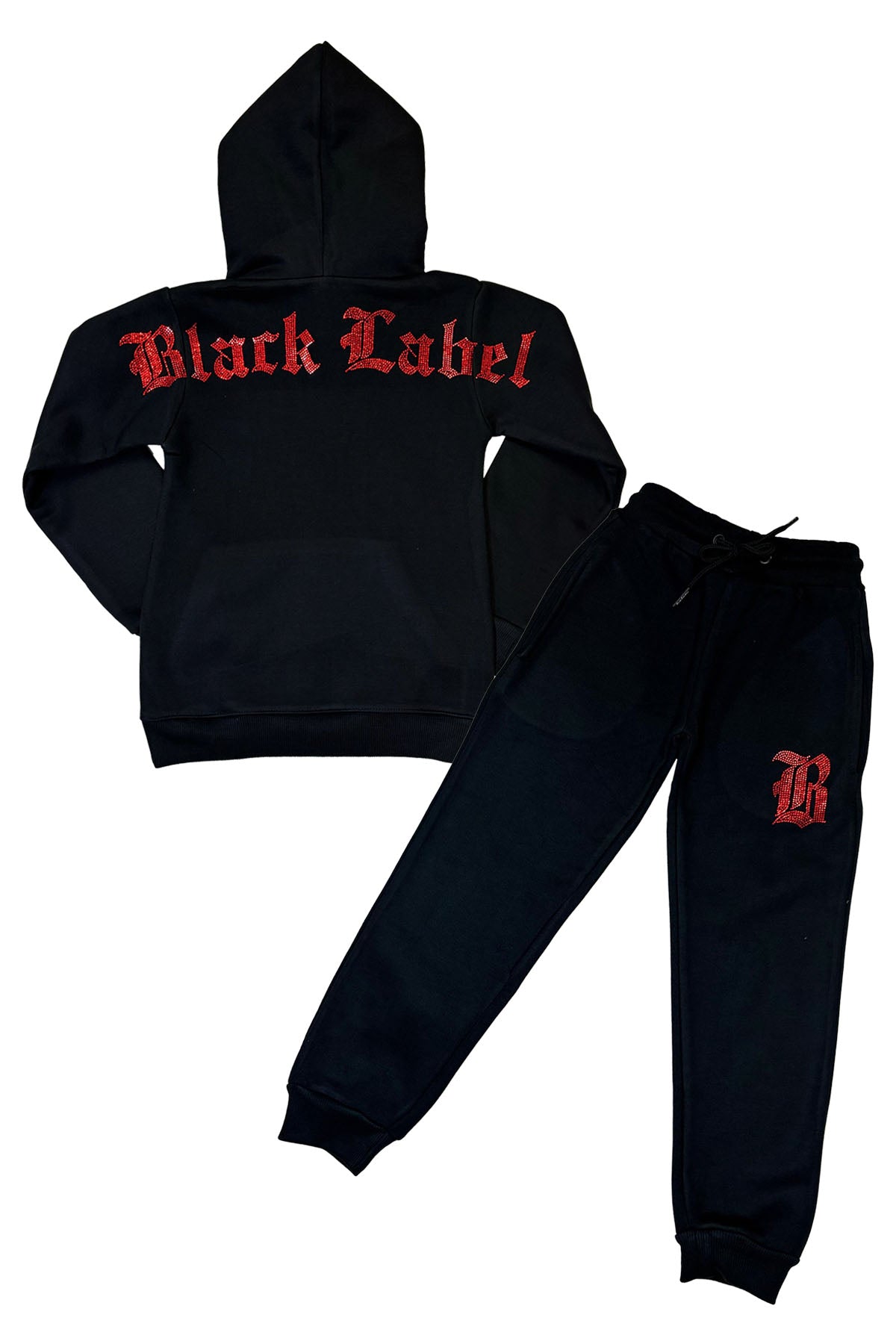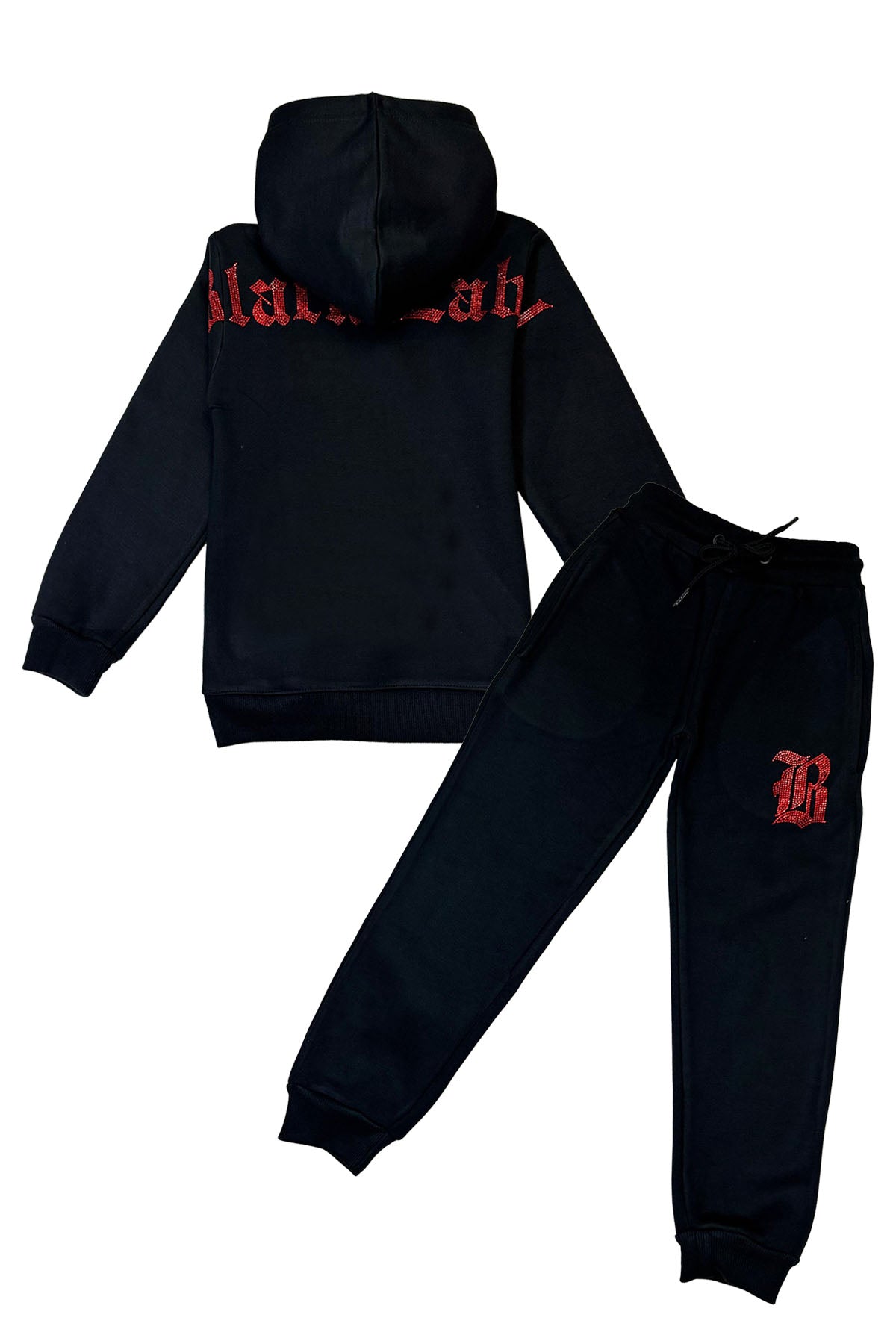 Kids Black Label Red Bling Hoodie and Jogger Set