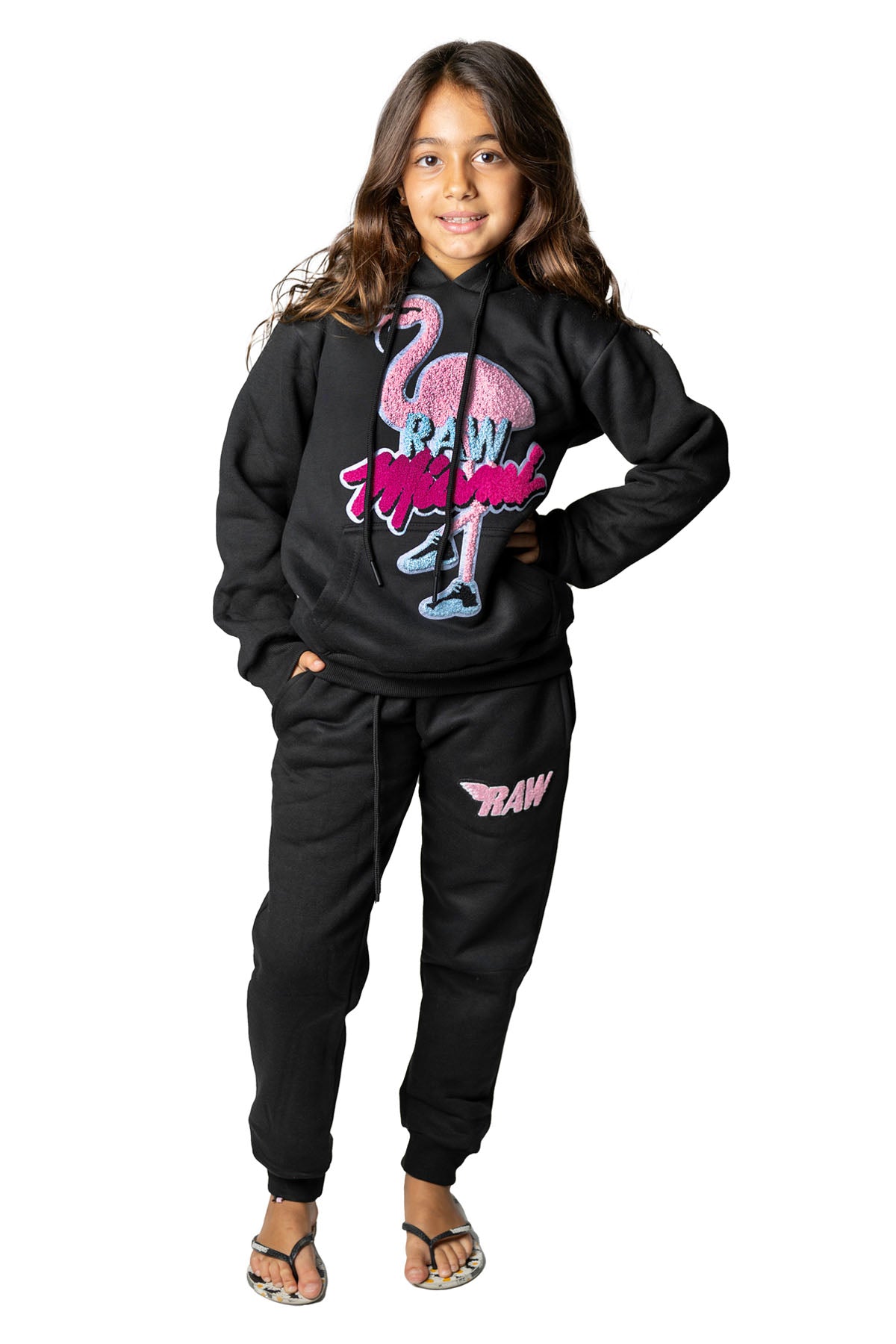 Kids Flamingo Chenille Hoodie and Jogger Set
