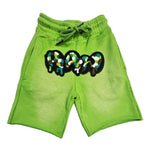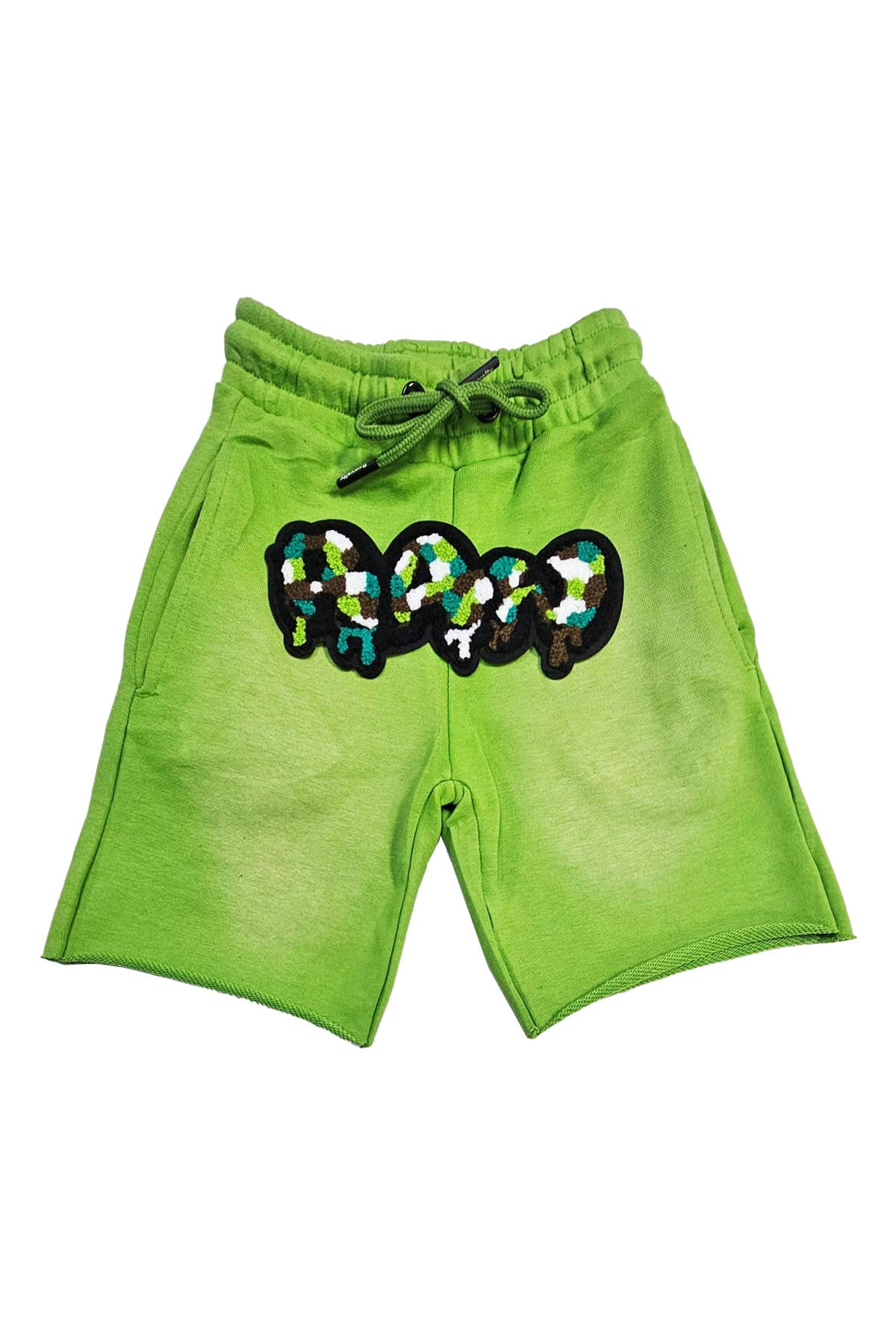 Kids RAW Drip Camo Green Chenille Cotton Shorts