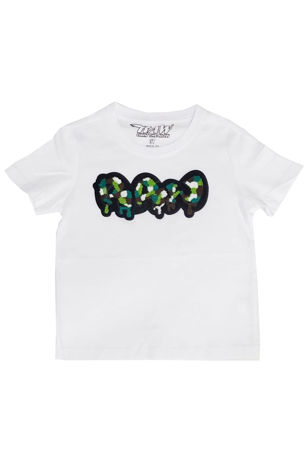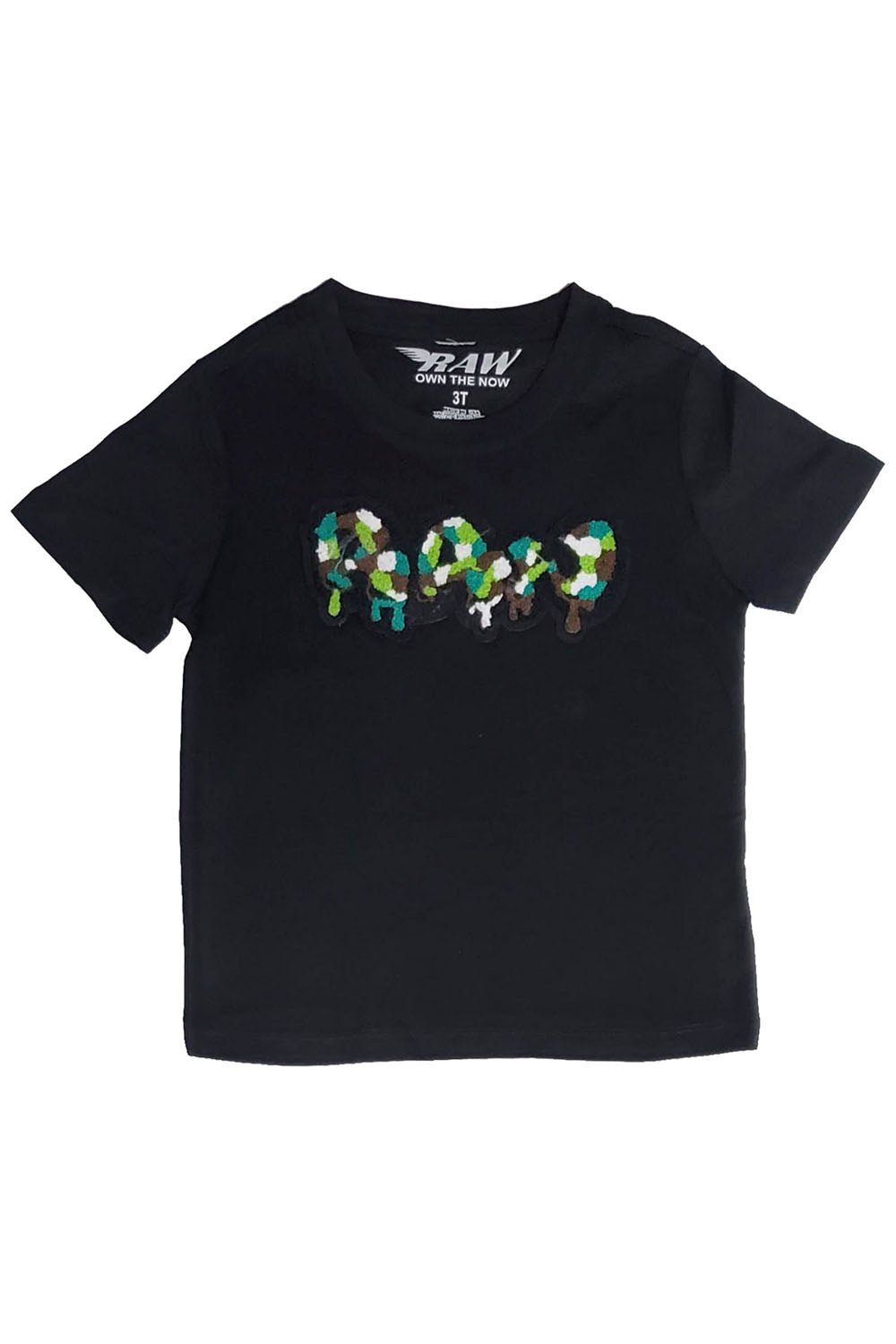 Kids RAW Drip Camo Green Chenille Crew Neck T-Shirt