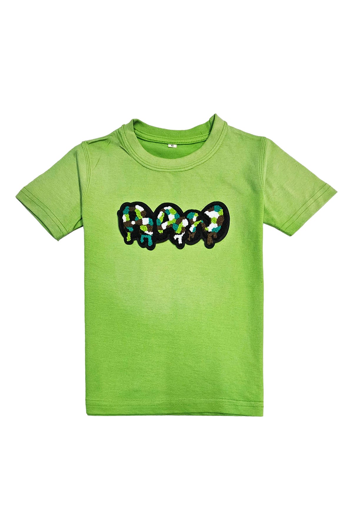 Kids RAW Drip Camo Green Chenille T-Shirt