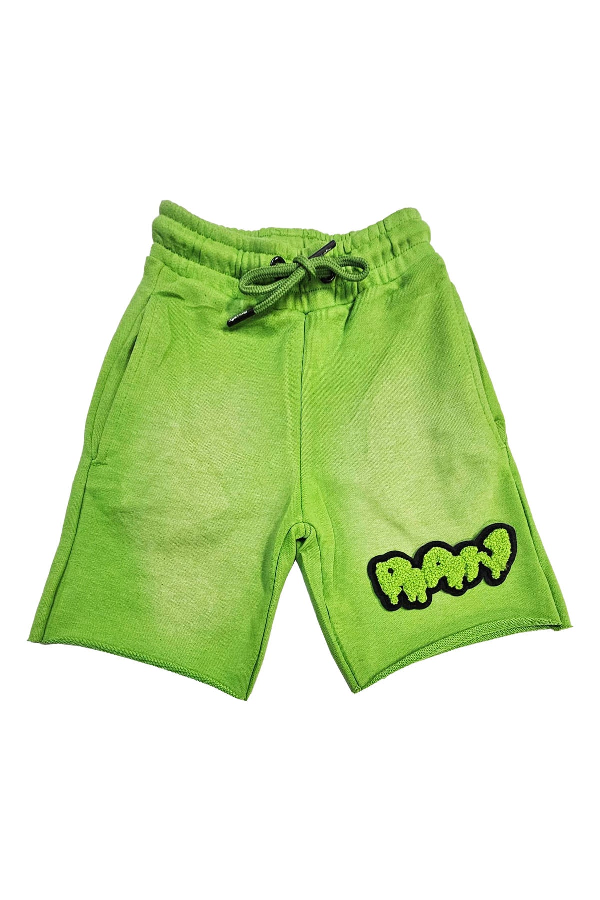 Kids RAW Drip Lime Green Chenille Cotton Shorts