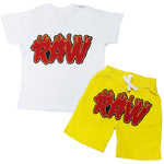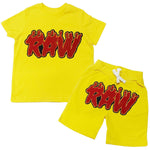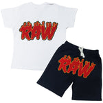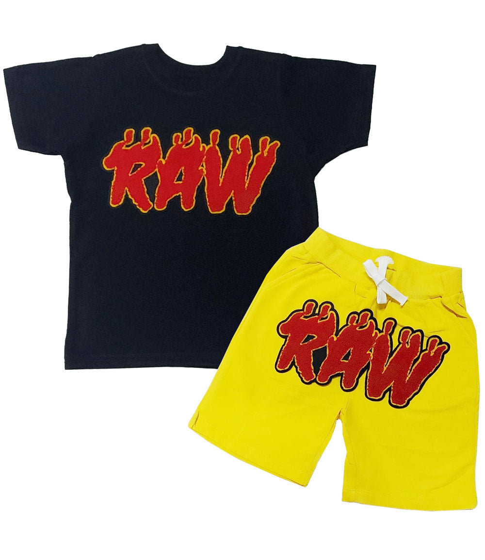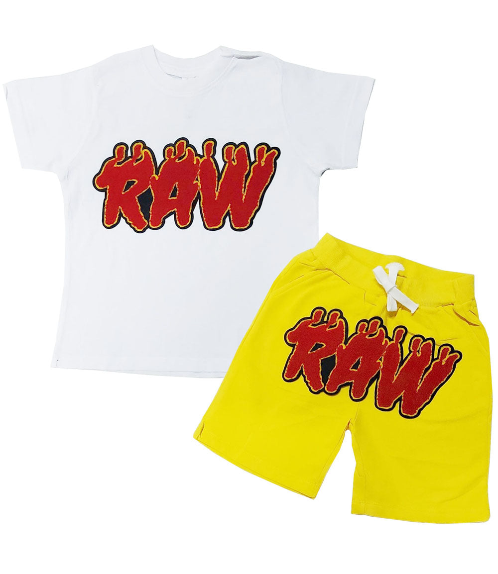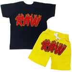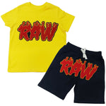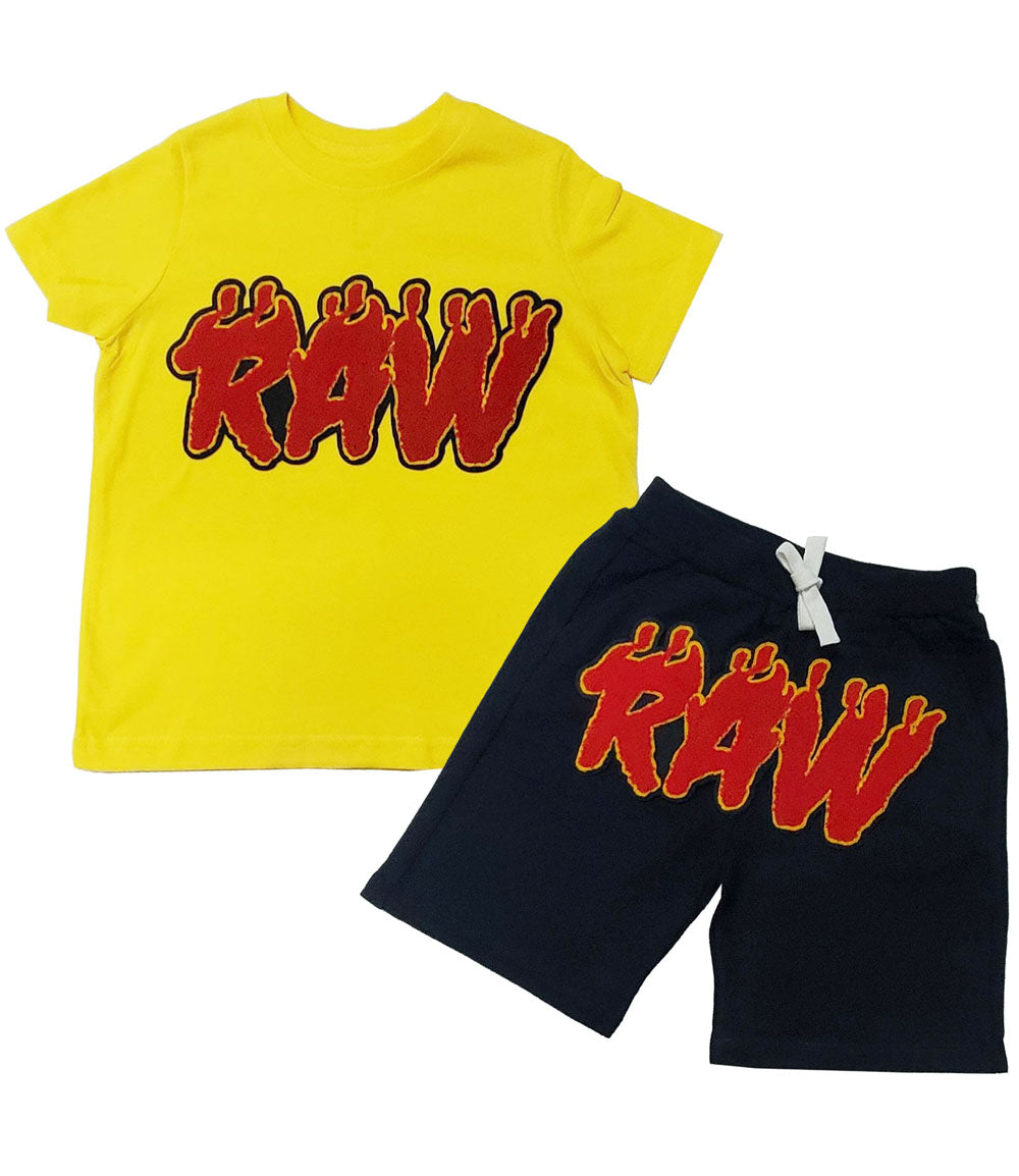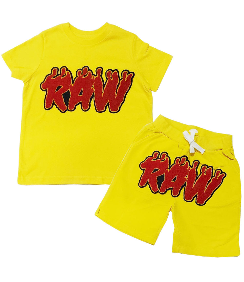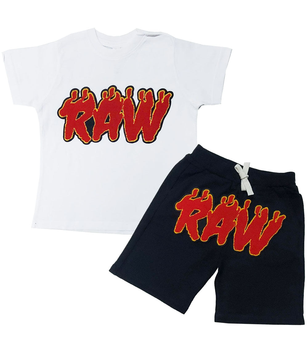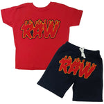 Kids RAW Flame Red Chenille Crew Neck and Cotton Shorts Set