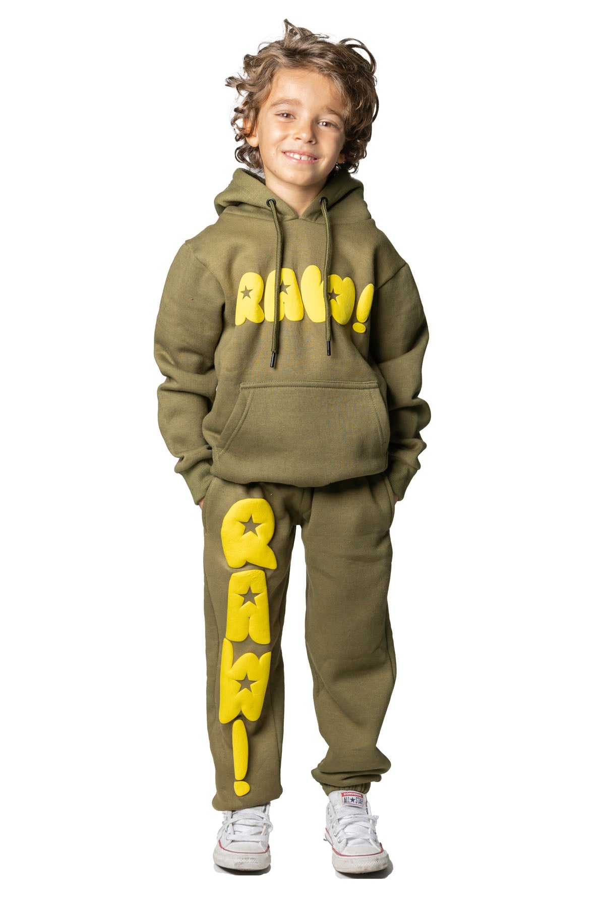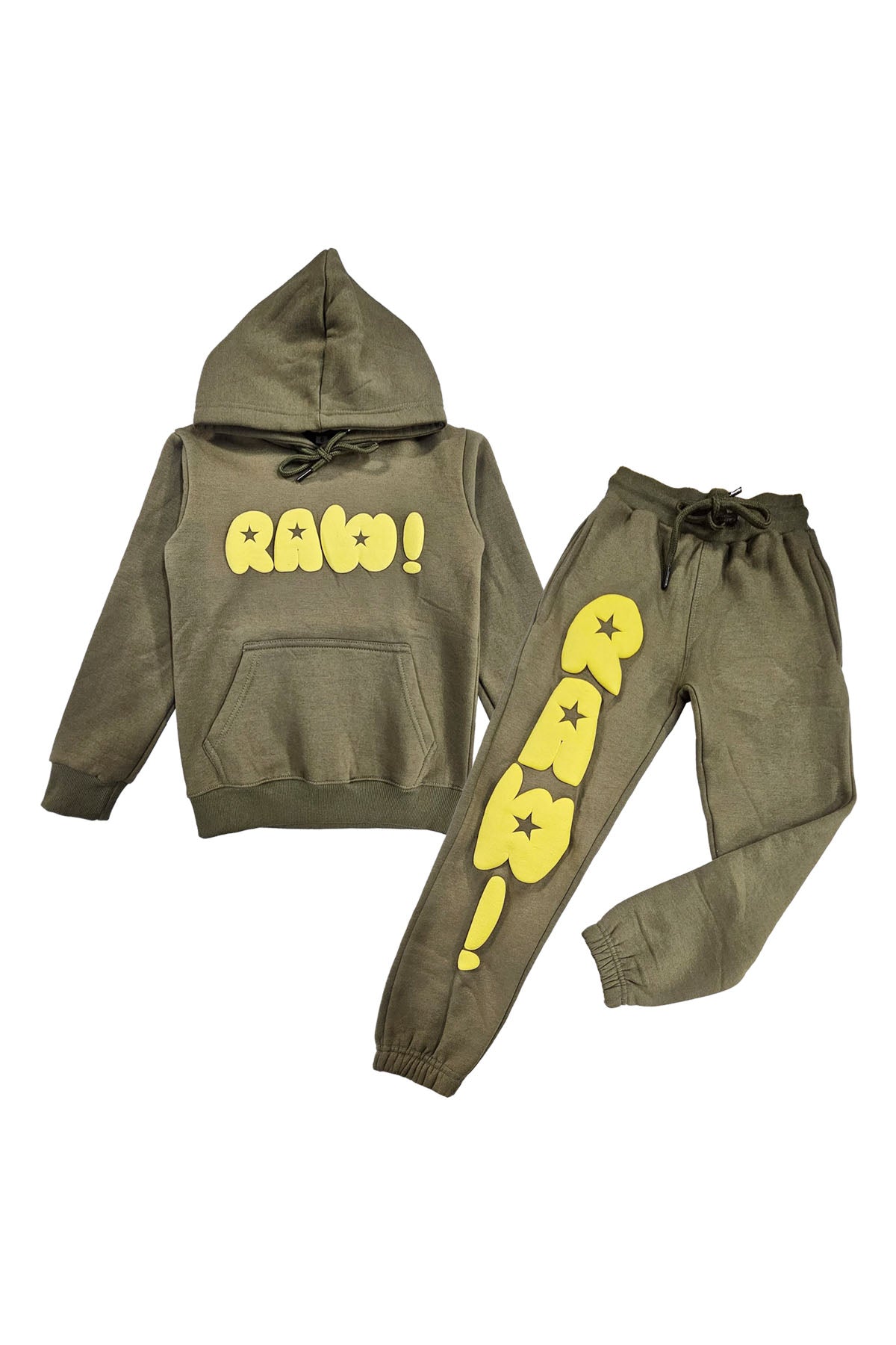Kids RAW Star Yellow Puff Hoodie and Jogger Set
