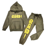 Rawyalty hoodie and jogger set with original graphic artwork on front.