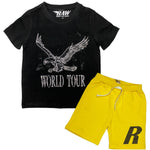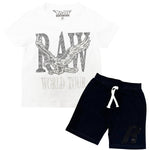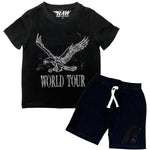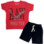 Kids RAW World Tour Black Bling Crew Neck T-Shirt and RAW Wing Black Bling Cotton Shorts Set