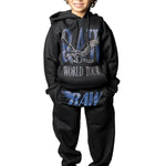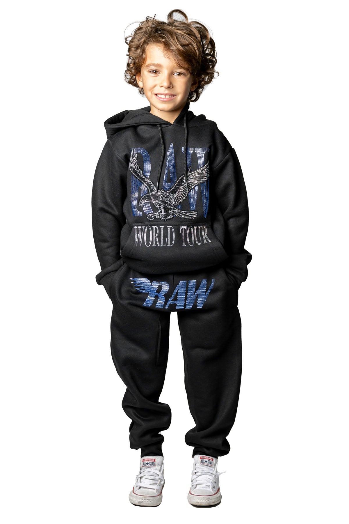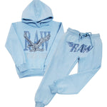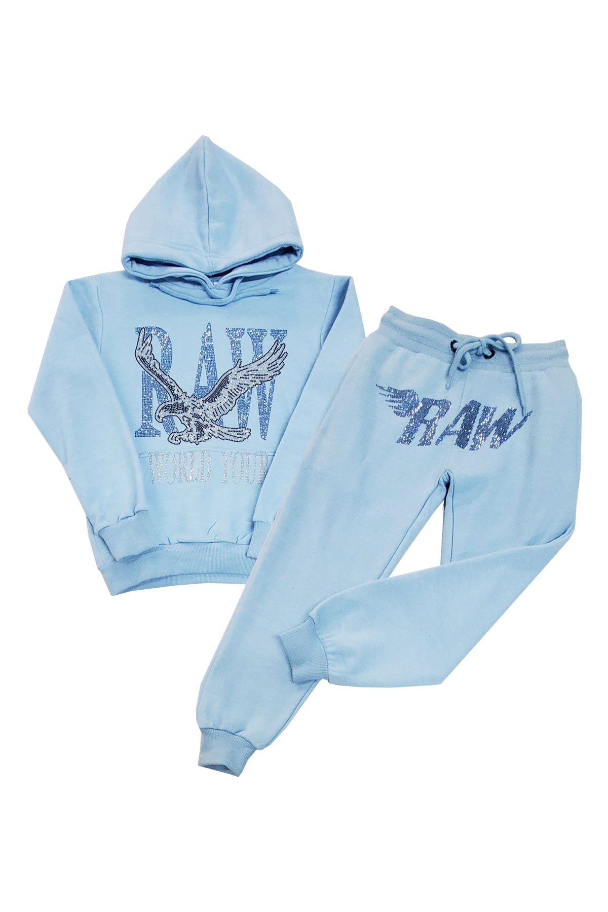 Kids RAW World Tour Light Blue Bling Hoodie and RAW Wing Light Blue Bling Jogger Set