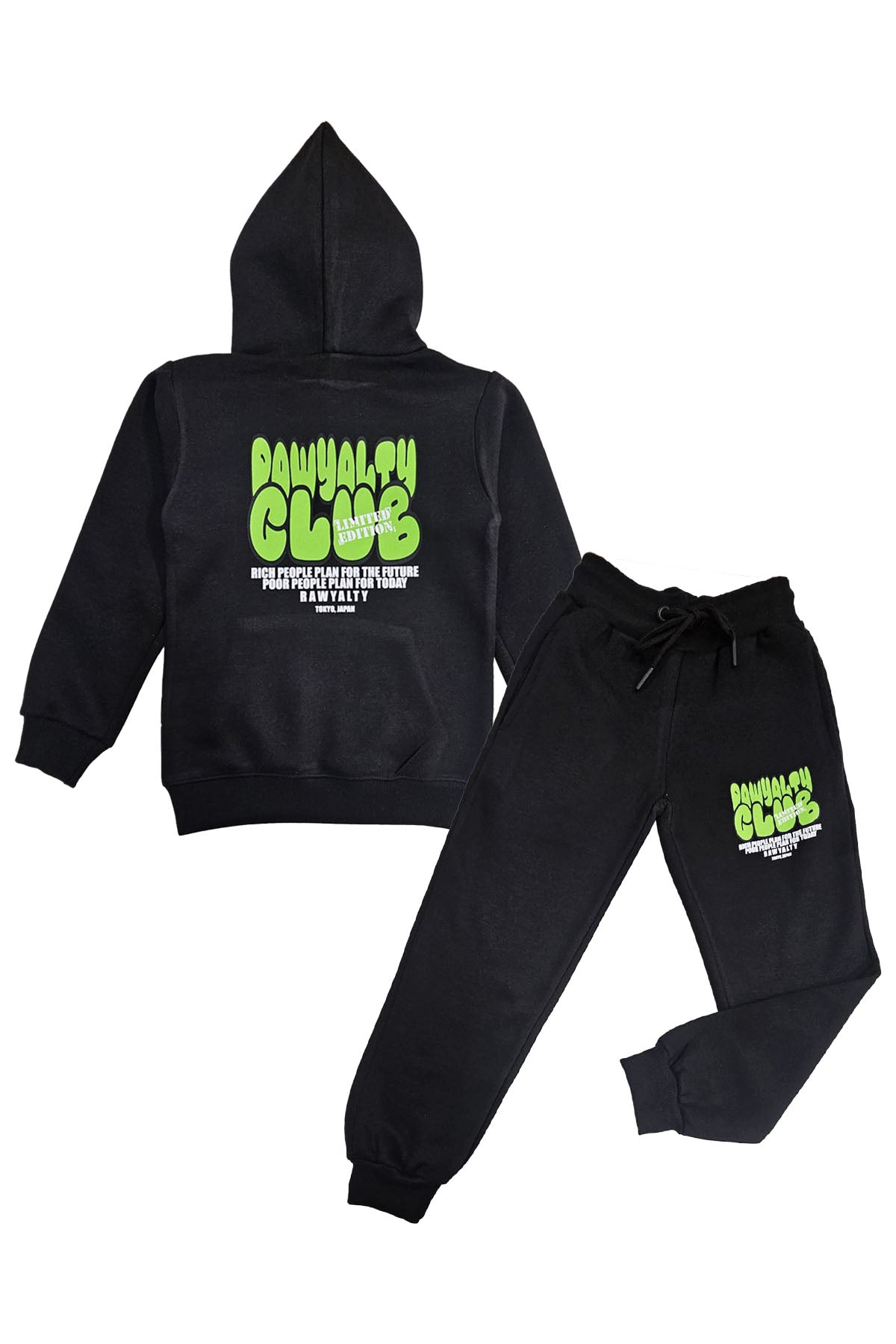 Rawyalty hoodie and jogger set with original graphic artwork on front.