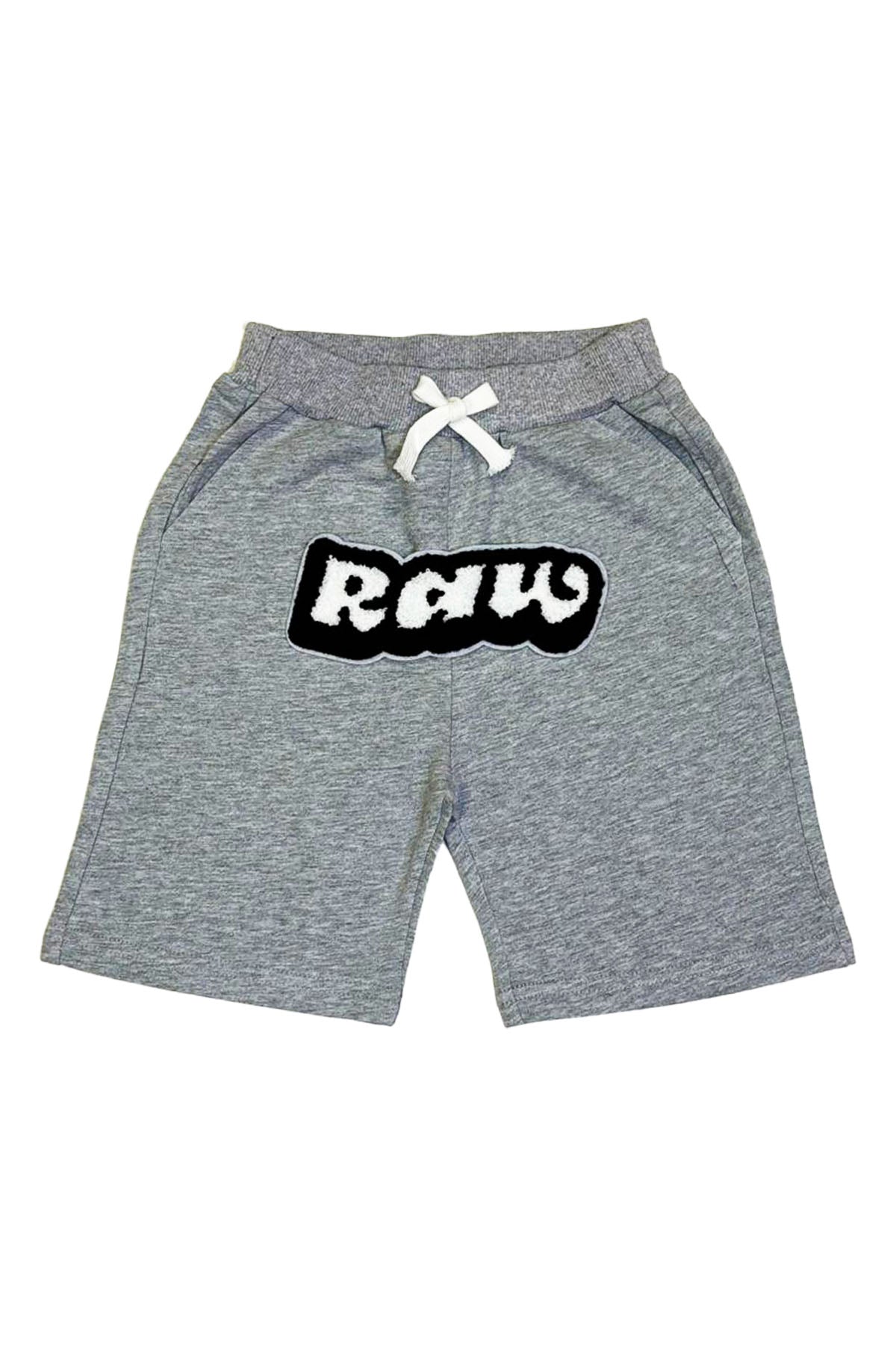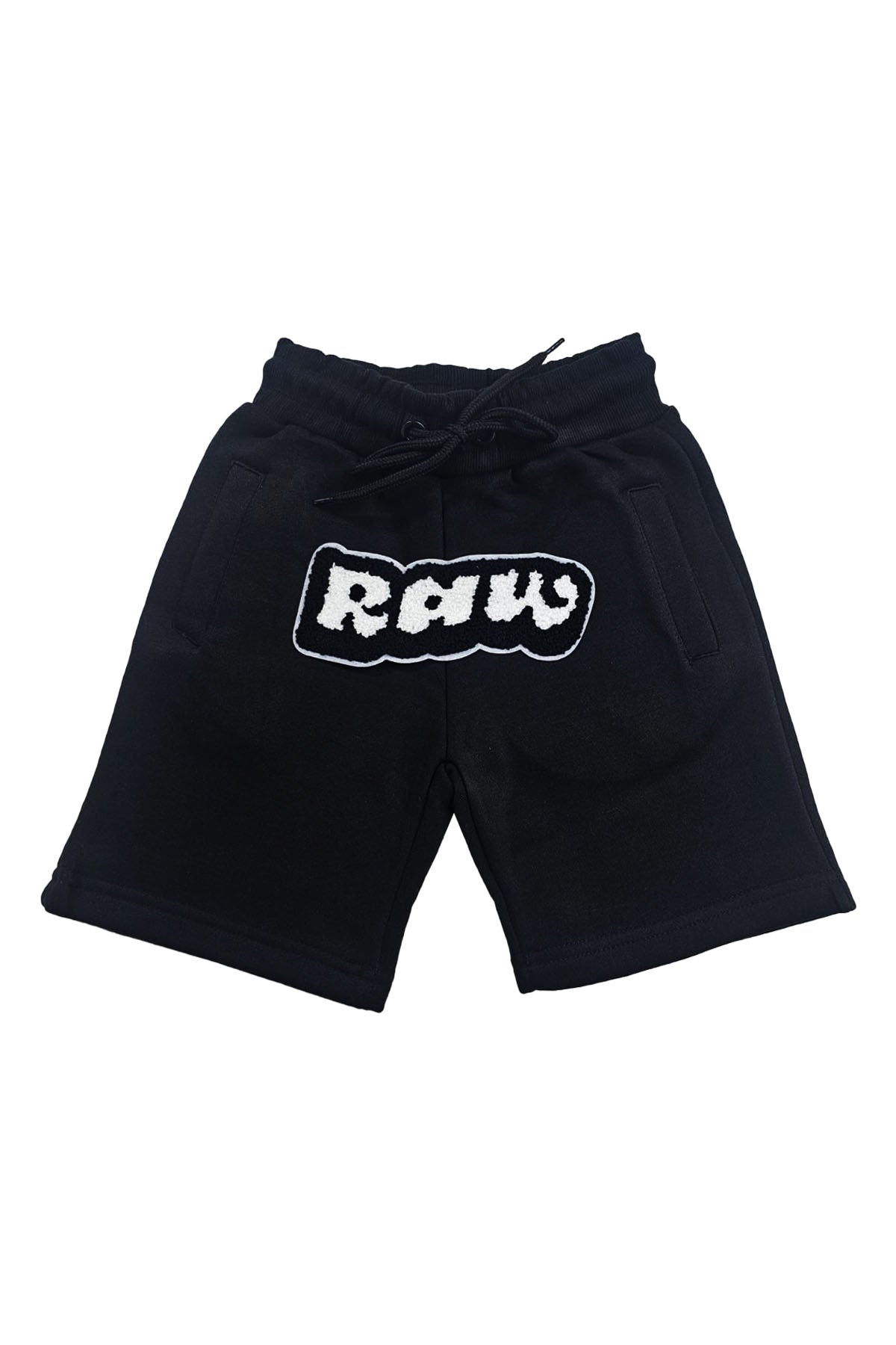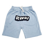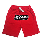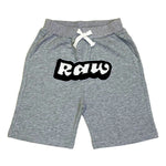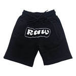 Rawyalty shorts with original graphic artwork on front.