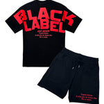 Men Black Label BL6 Red Silicone T-Shirt and Cotton Shorts Set