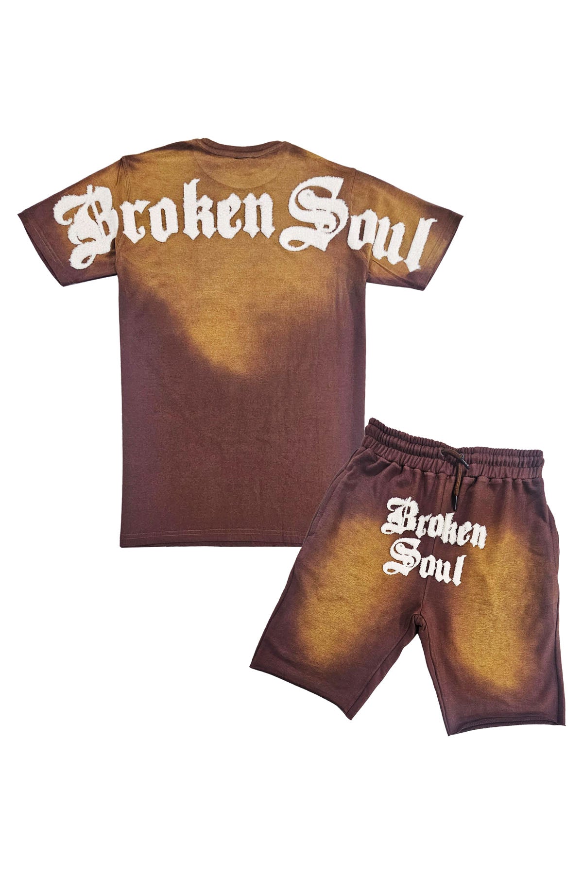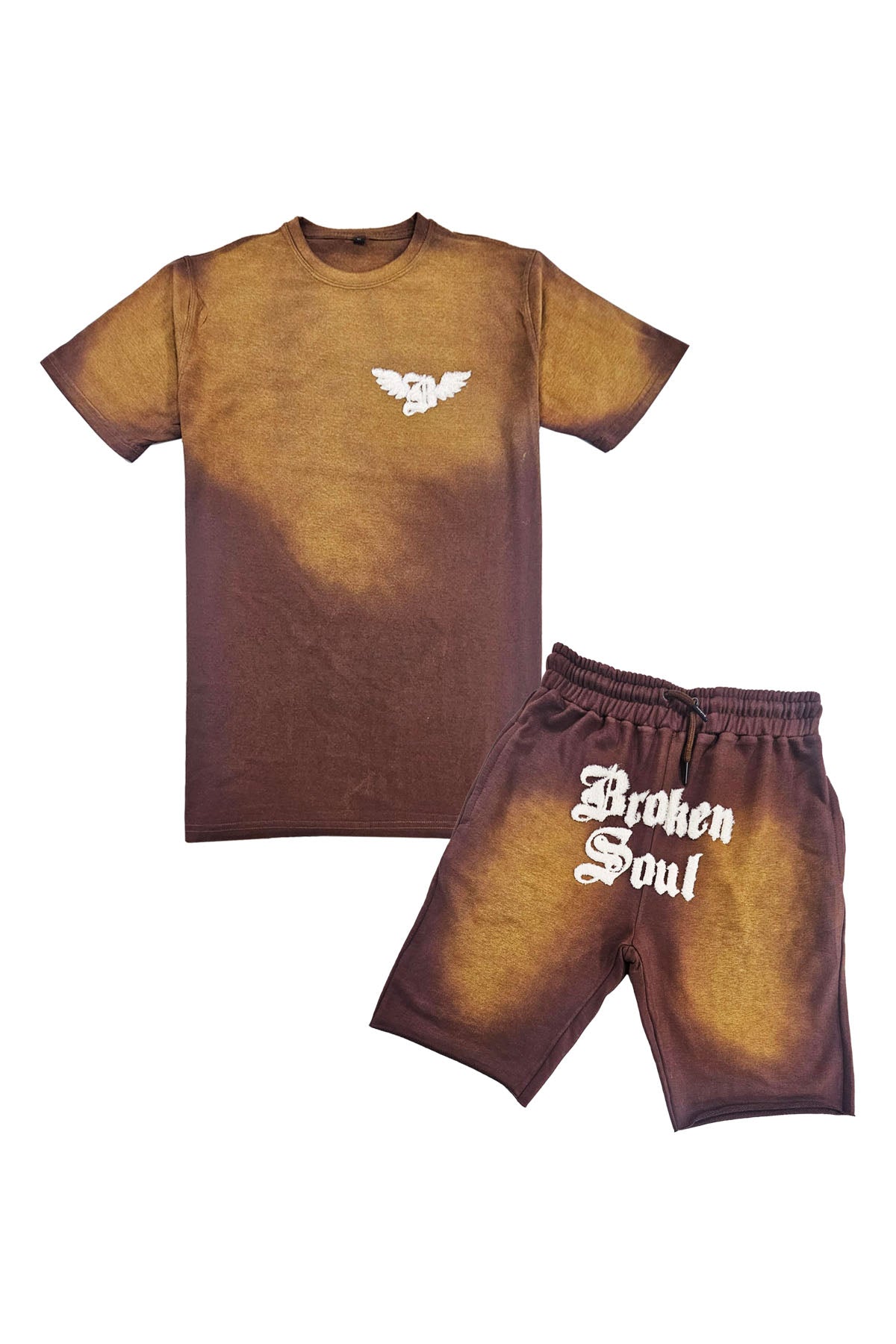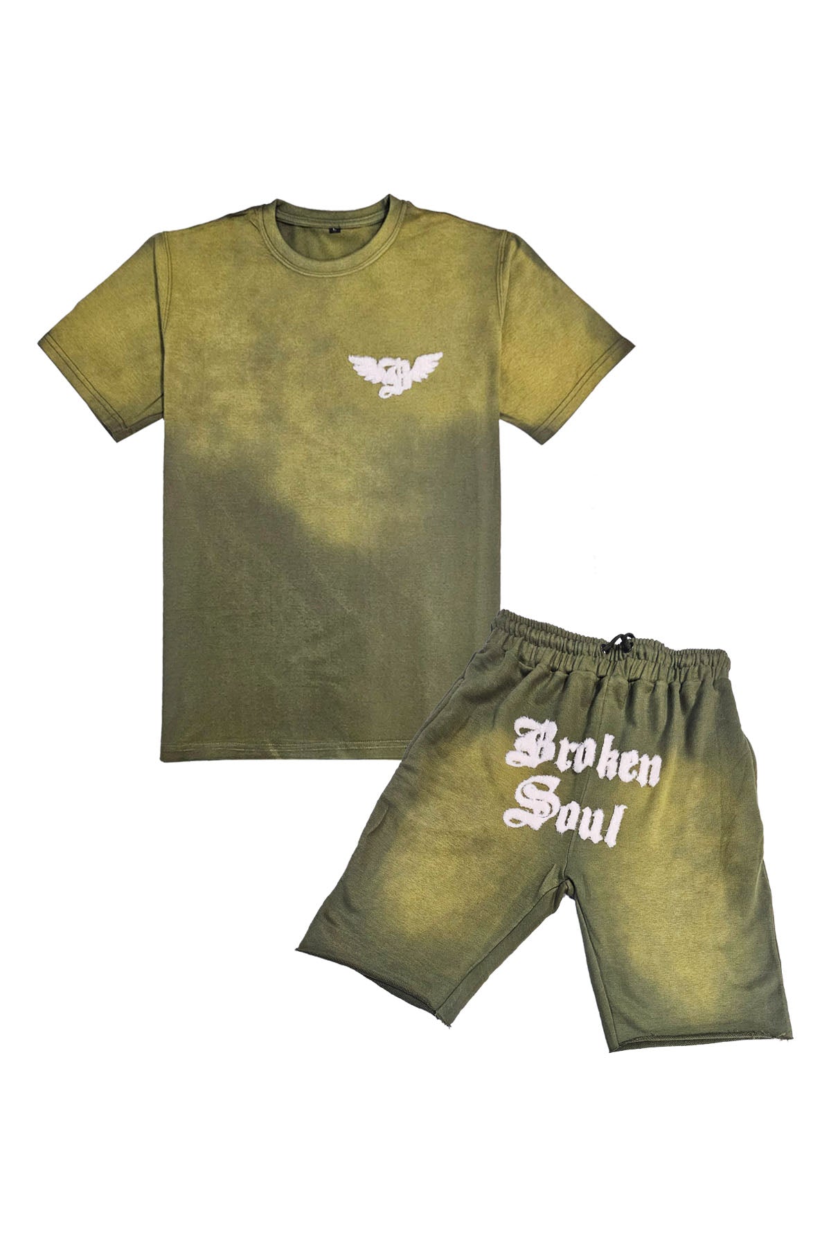 Men Broken Soul Cream Chenille T-Shirt and Cotton Shorts Set