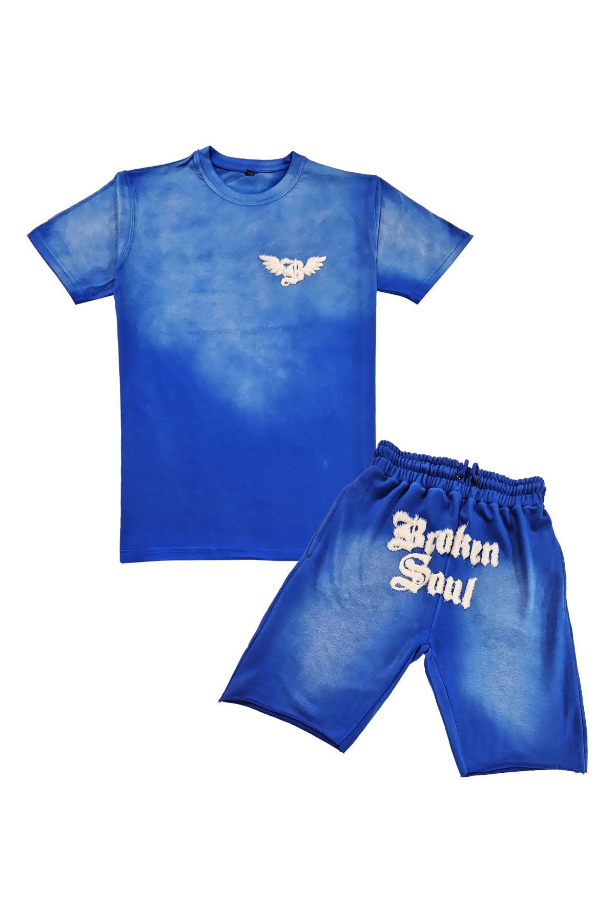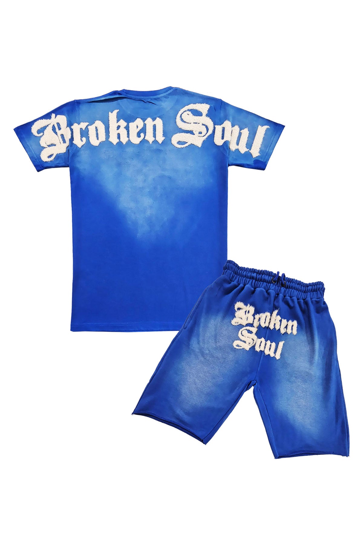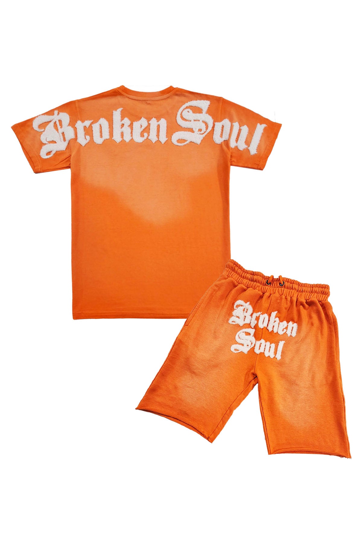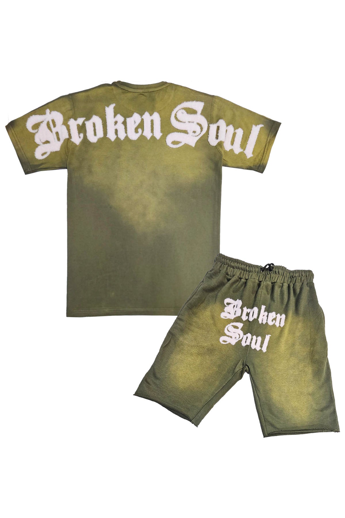 Men Broken Soul Cream Chenille T-Shirt and Cotton Shorts Set