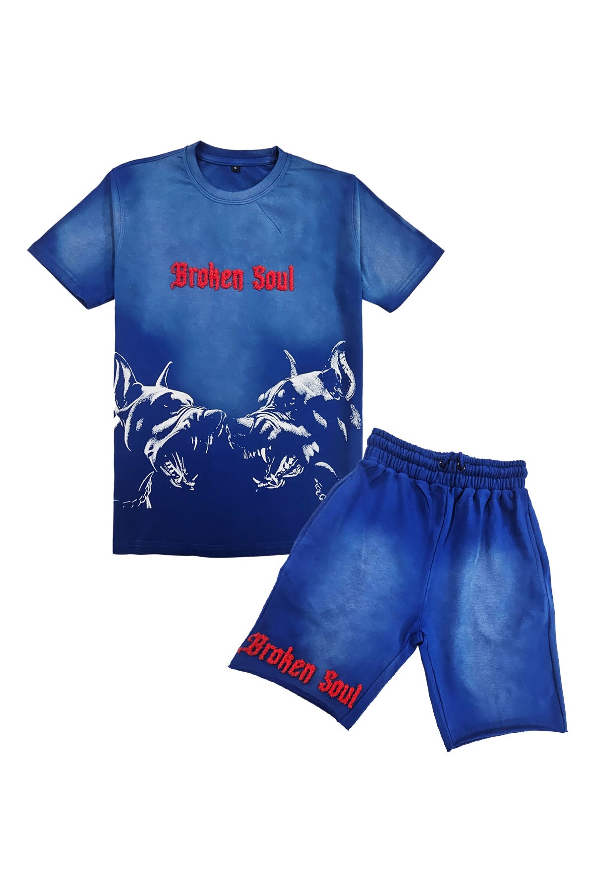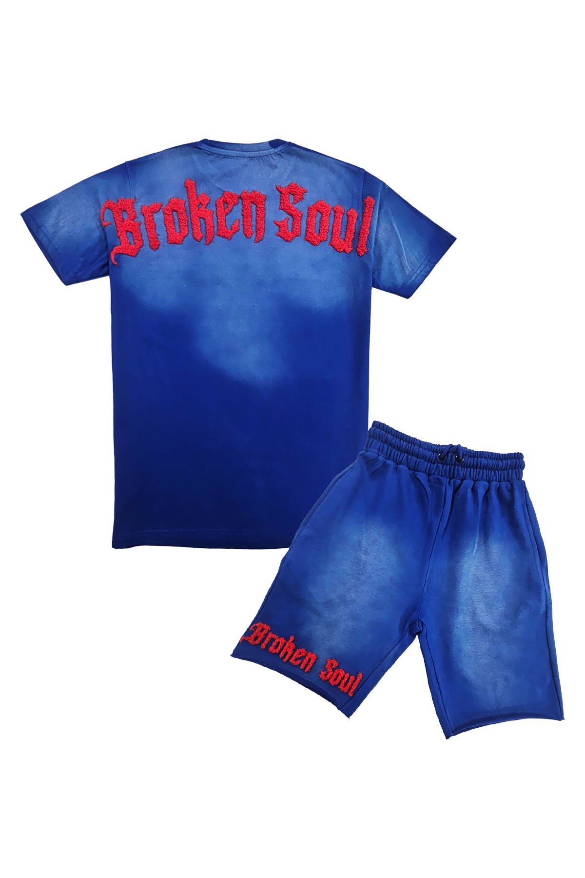 Men Broken Soul Try Me Chenille T-Shirt and Cotton Shorts Set