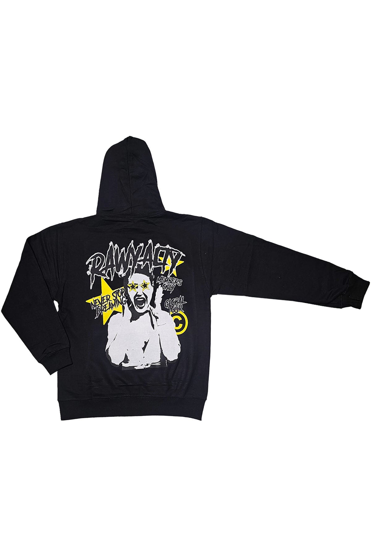 Rawyalty hoodie and jogge with original graphic artwork on front.