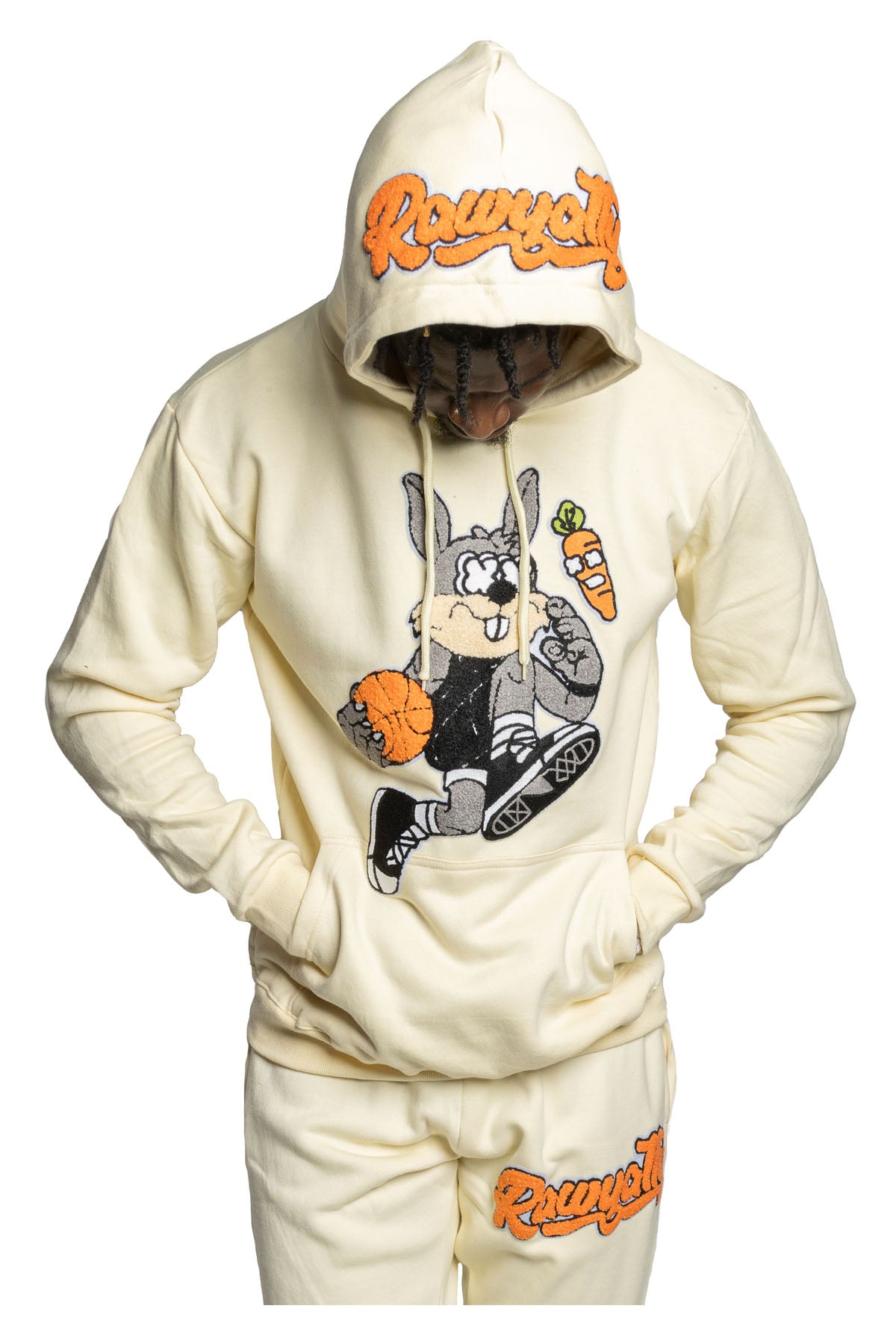 Rawyalty hoodie and jogge with original graphic artwork on front.