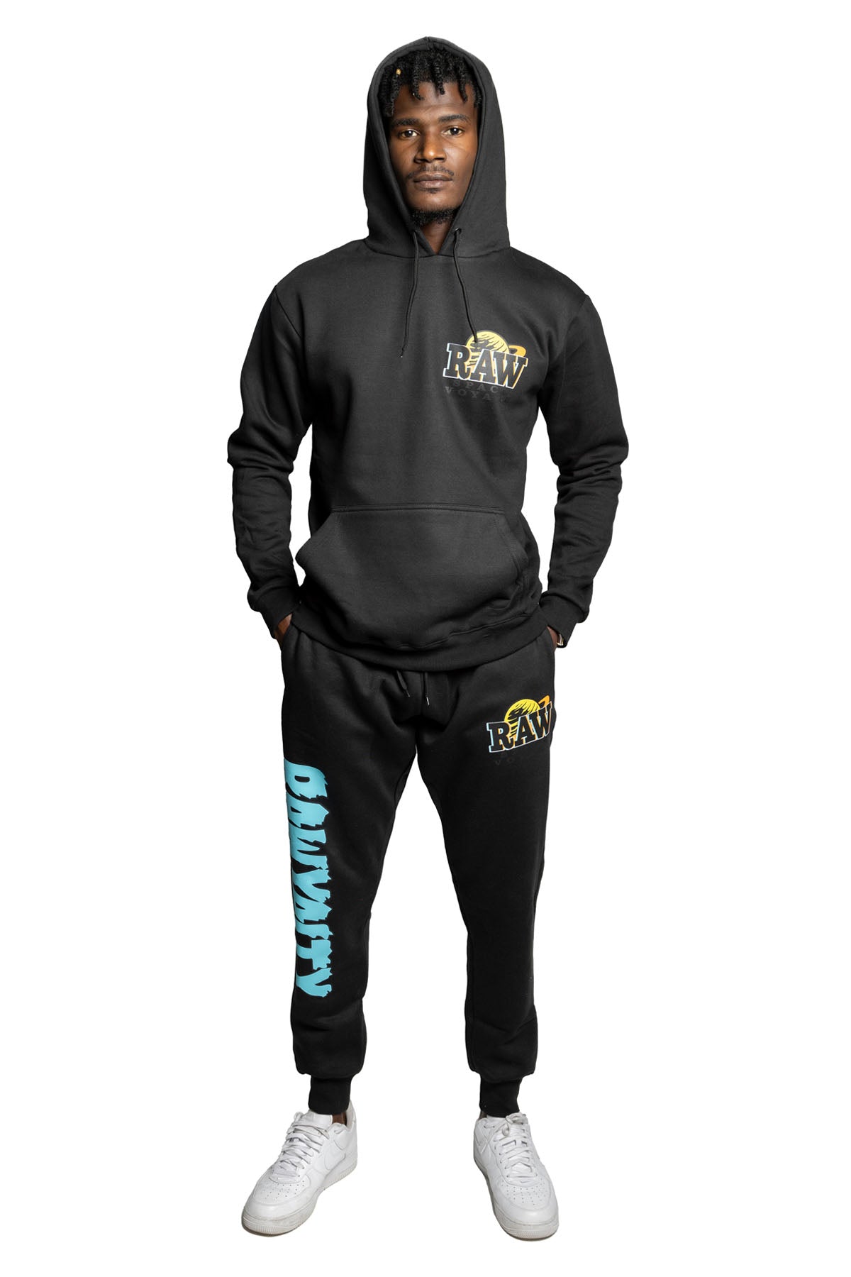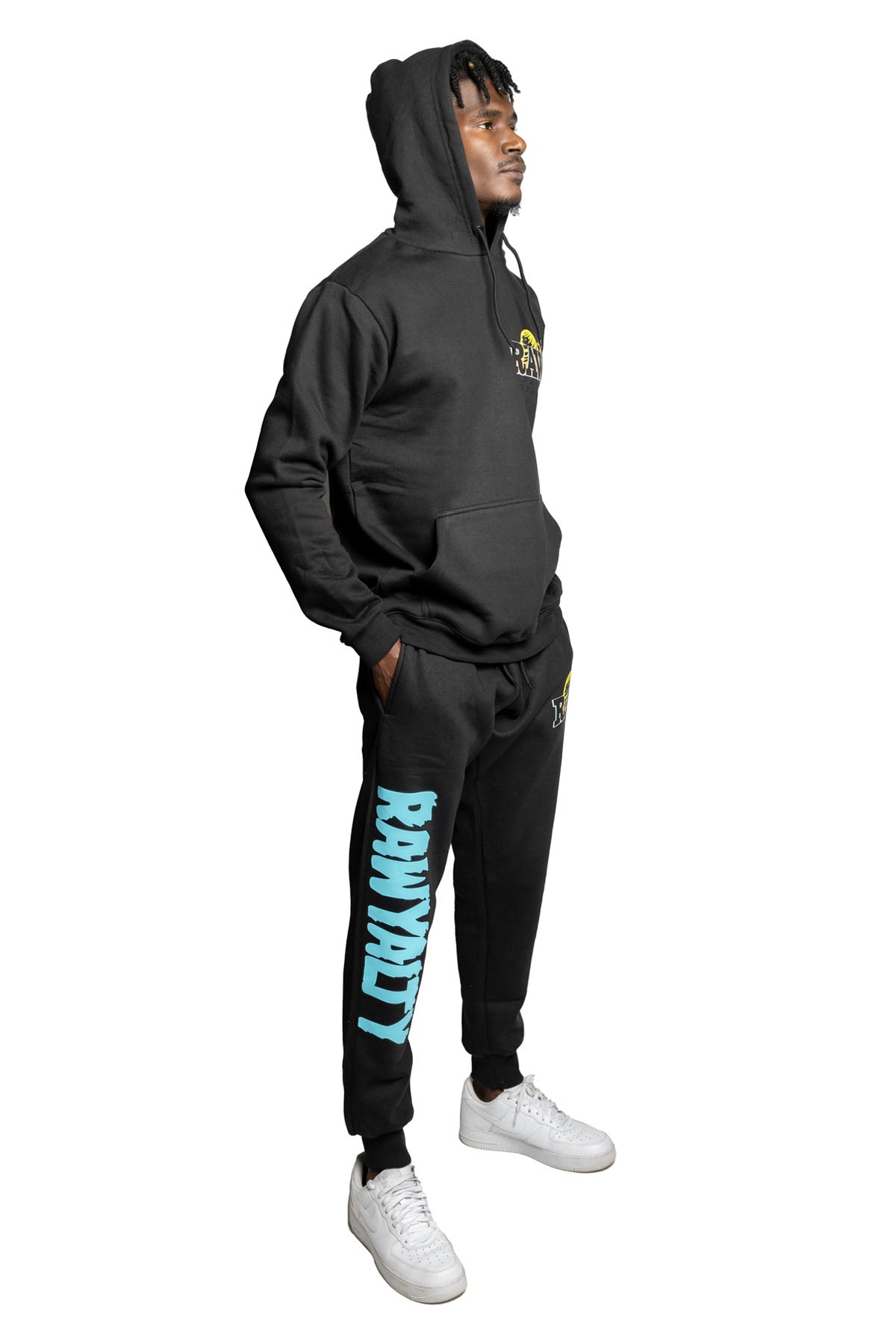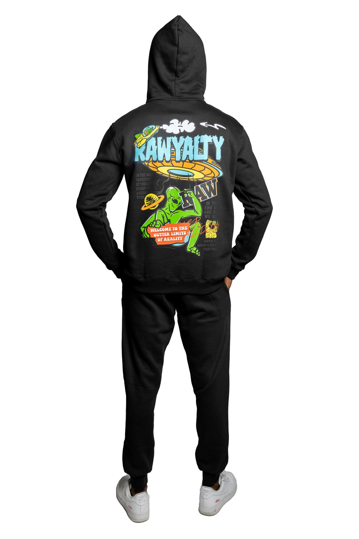 Rawyalty hoodie and jogge with original graphic artwork on front.