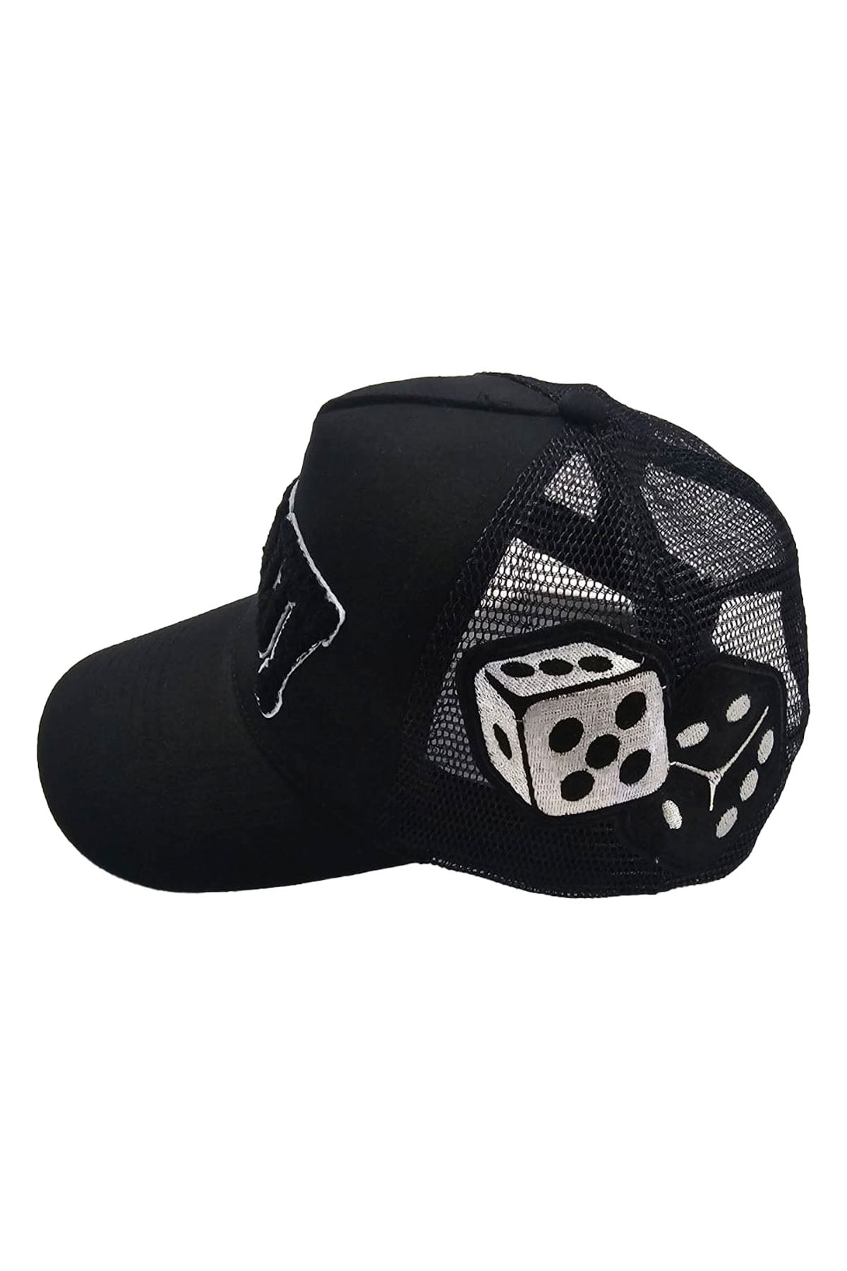 Men Rawyalty Black Chenille Dice Embroidery Hat
