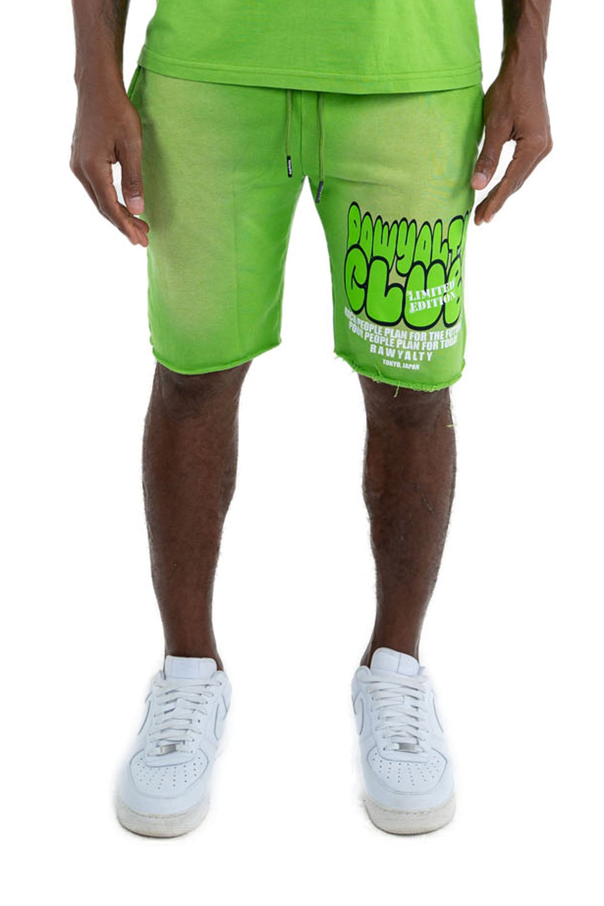 Rawyalt Shorts with original graphic artwork on front.