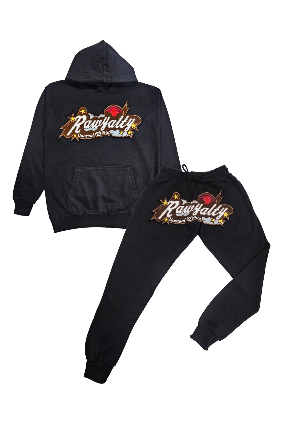 Rawyalty hoodie and jogge with original graphic artwork on front.