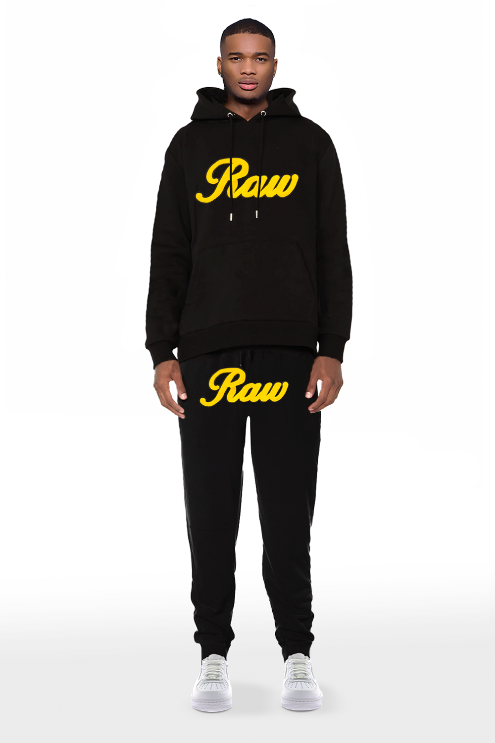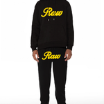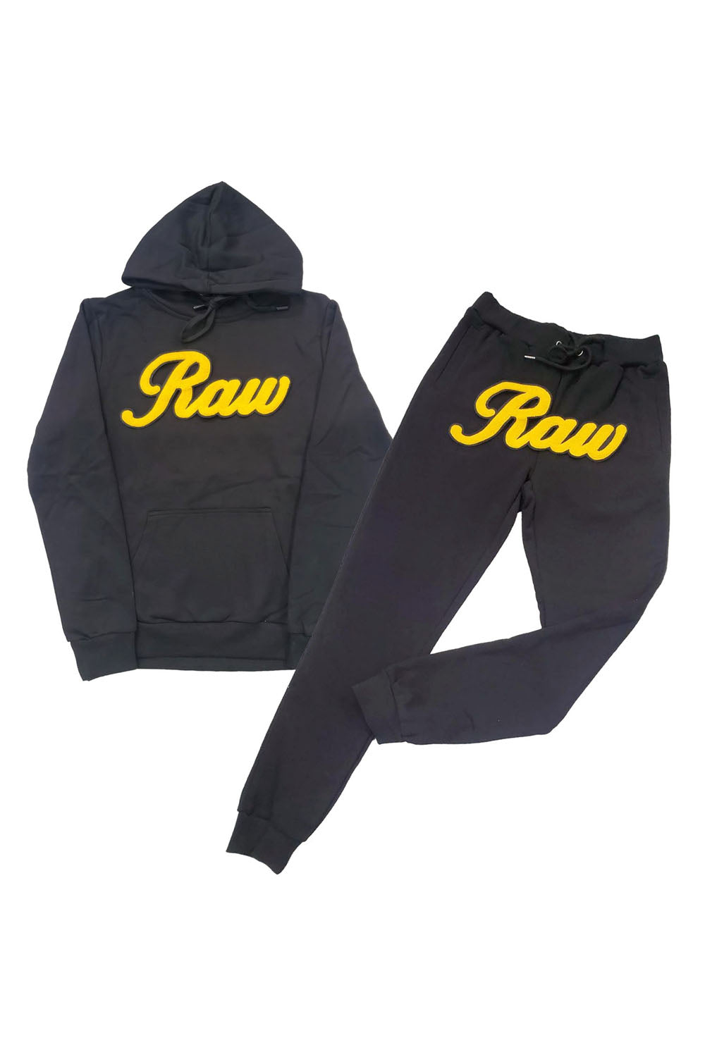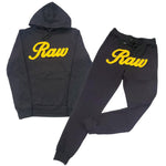 Men RAW Cursive Yellow Chenille Hoodie and Joggers Set