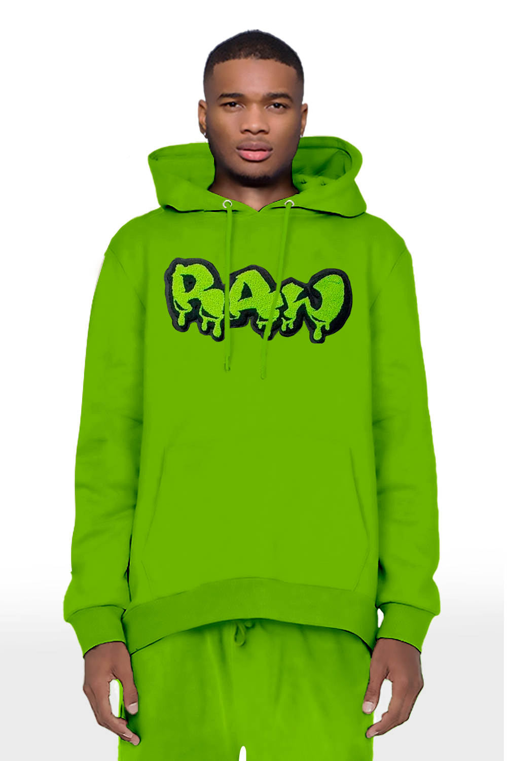 Men RAW Drip Lime Green Chenille Hoodie