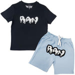 Kids RAW Drip White Chenille Crew Neck and Cotton Shorts Set