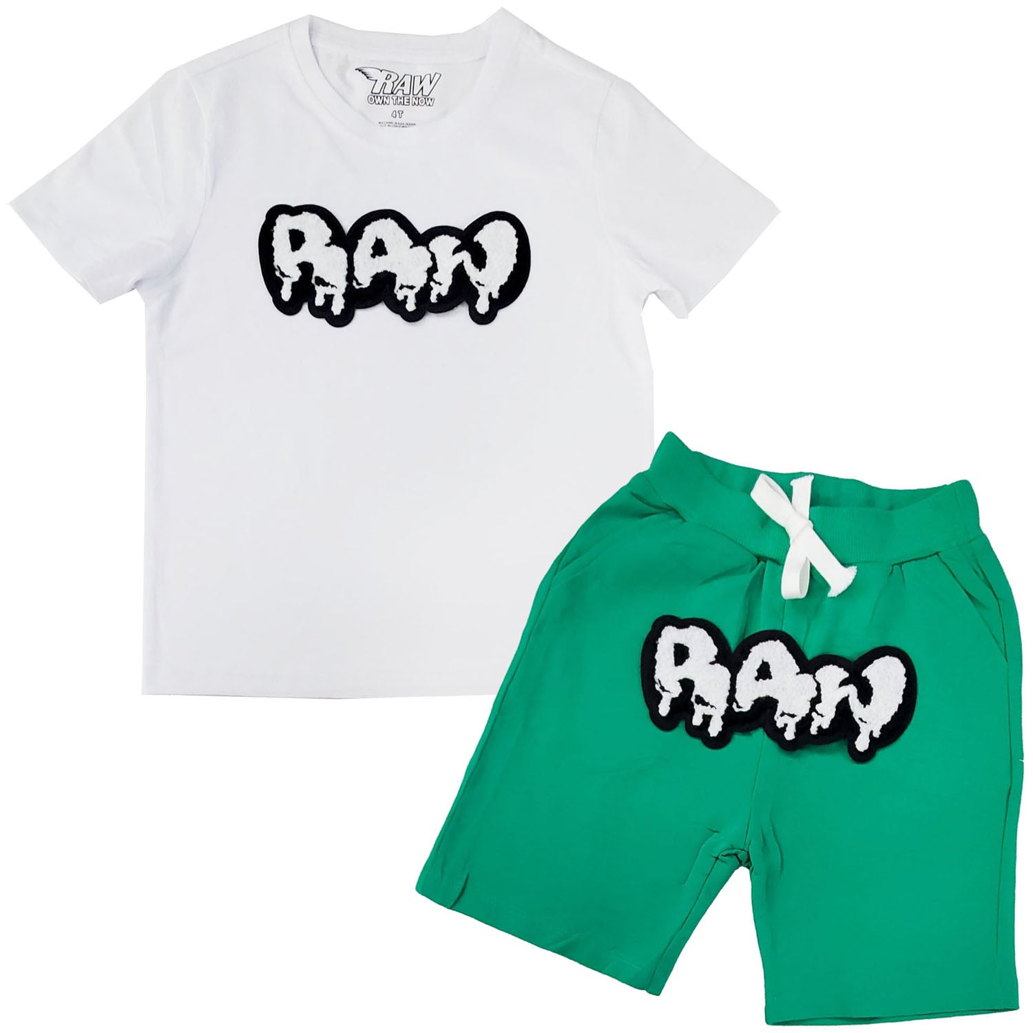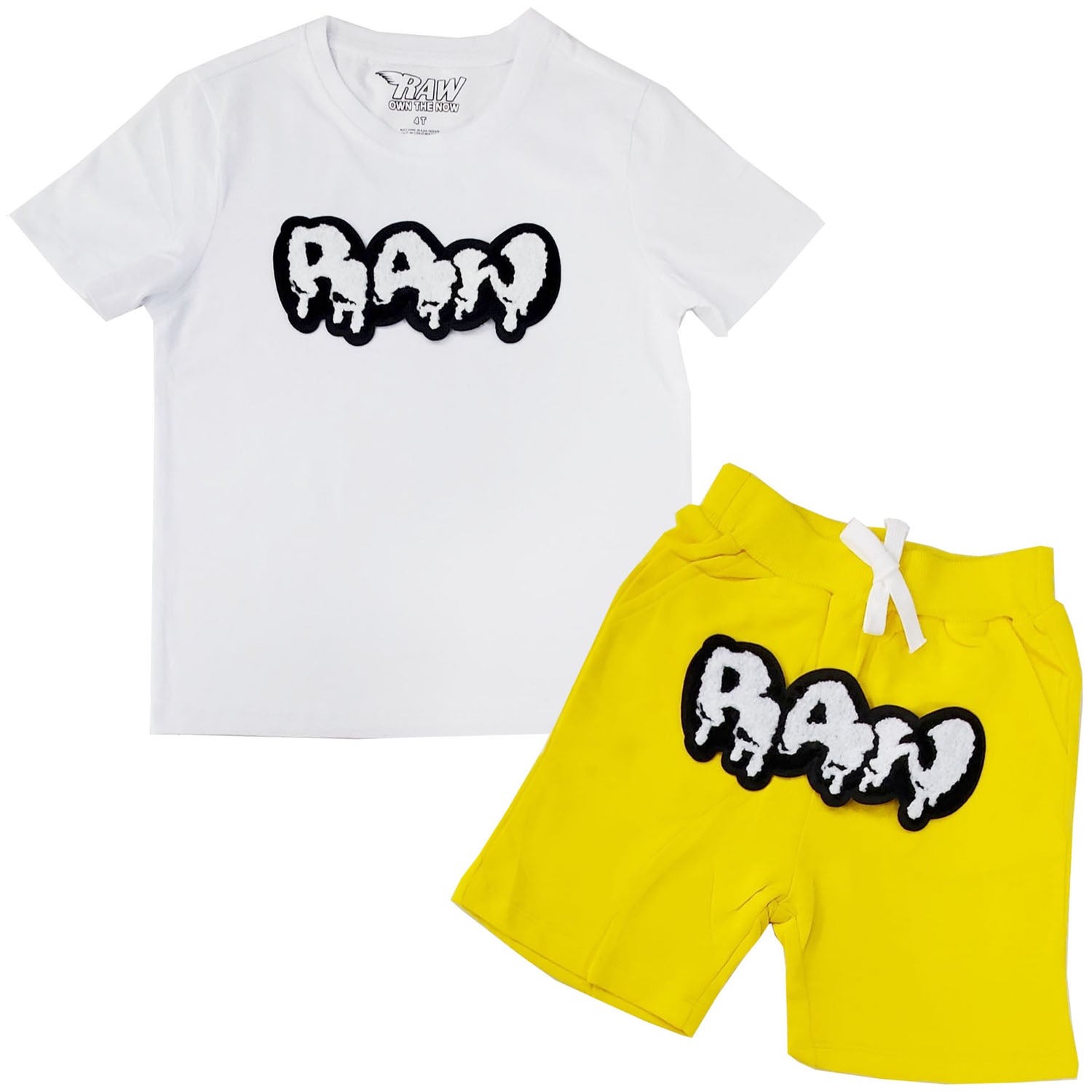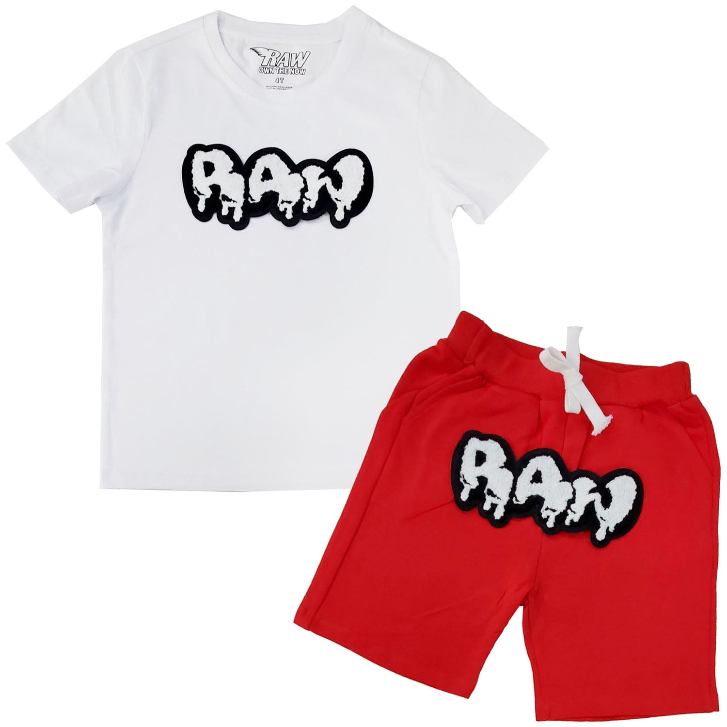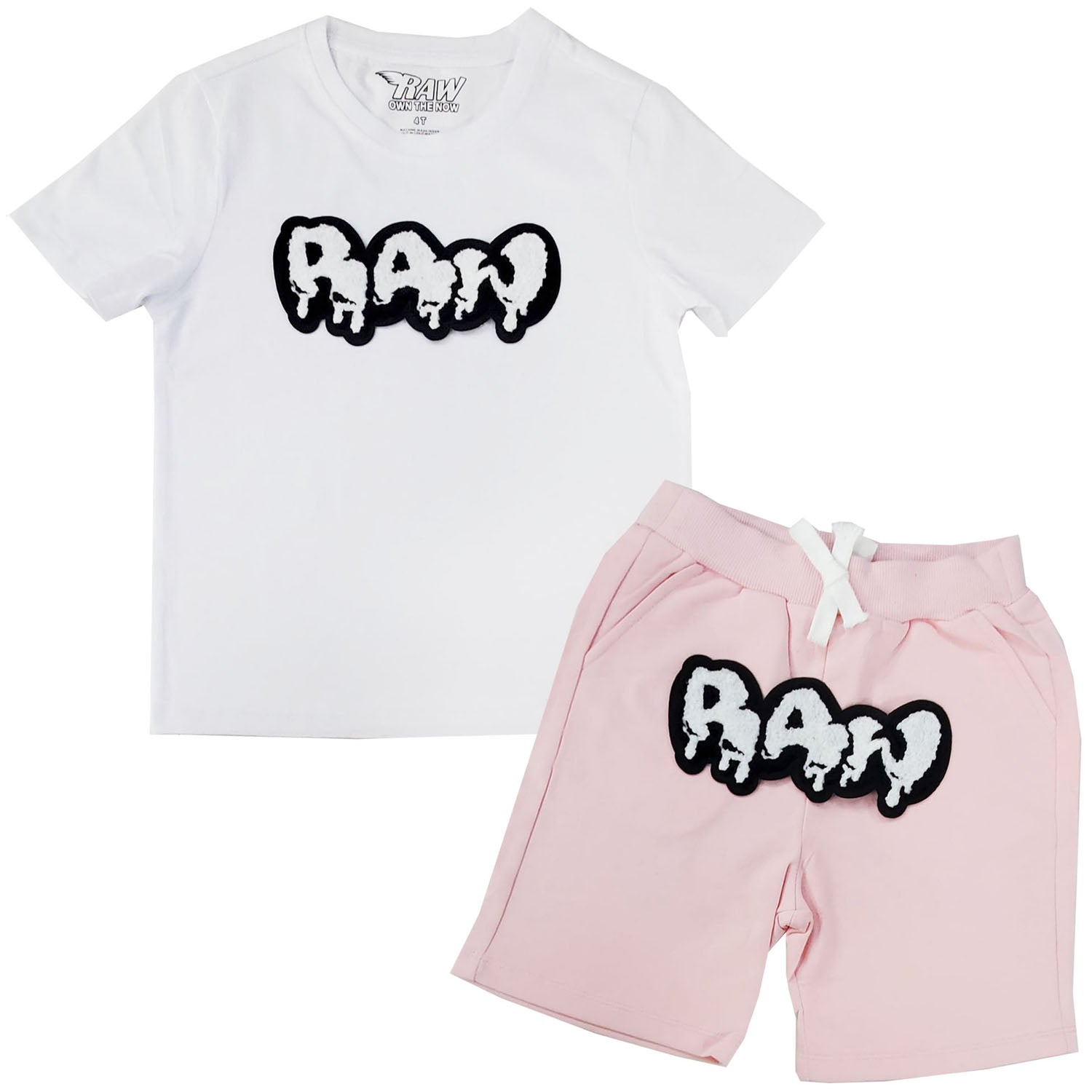 Kids RAW Drip White Chenille Crew Neck and Cotton Shorts Set