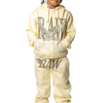 Rawyalty hoodie and jogger set with original graphic artwork on front.