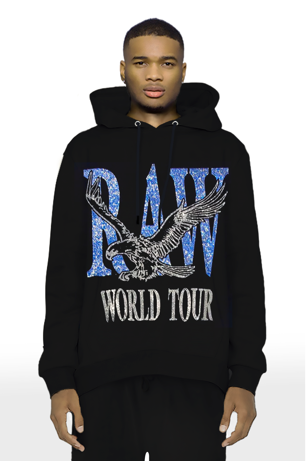 Men RAW World Tour Light Blue Bling Hoodie