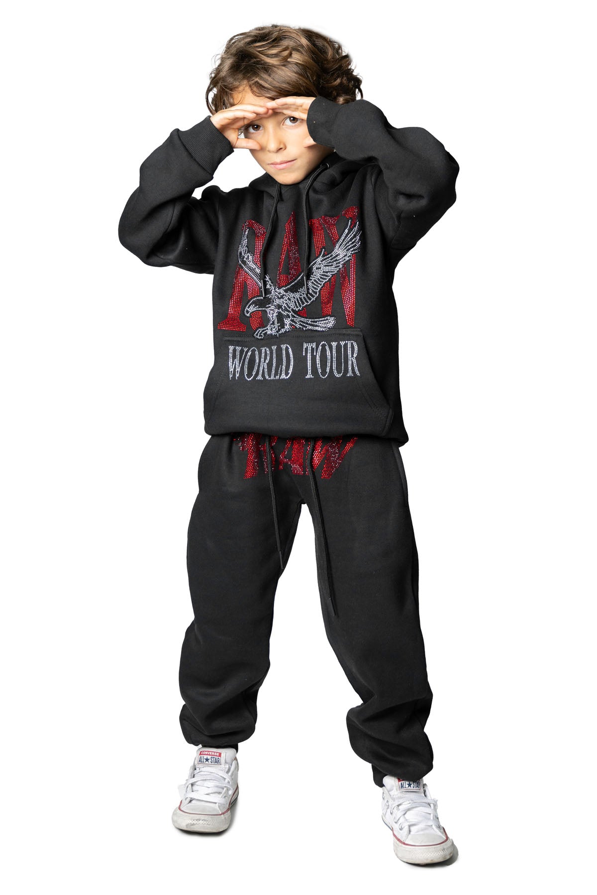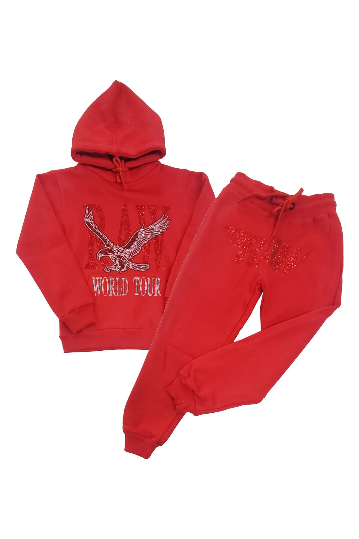 Kids RAW World Tour Red Bling Hoodie and RAW Wing Red Bling Jogger Set