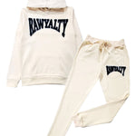 Rawyalty hoodie and jogge with original graphic artwork on front.