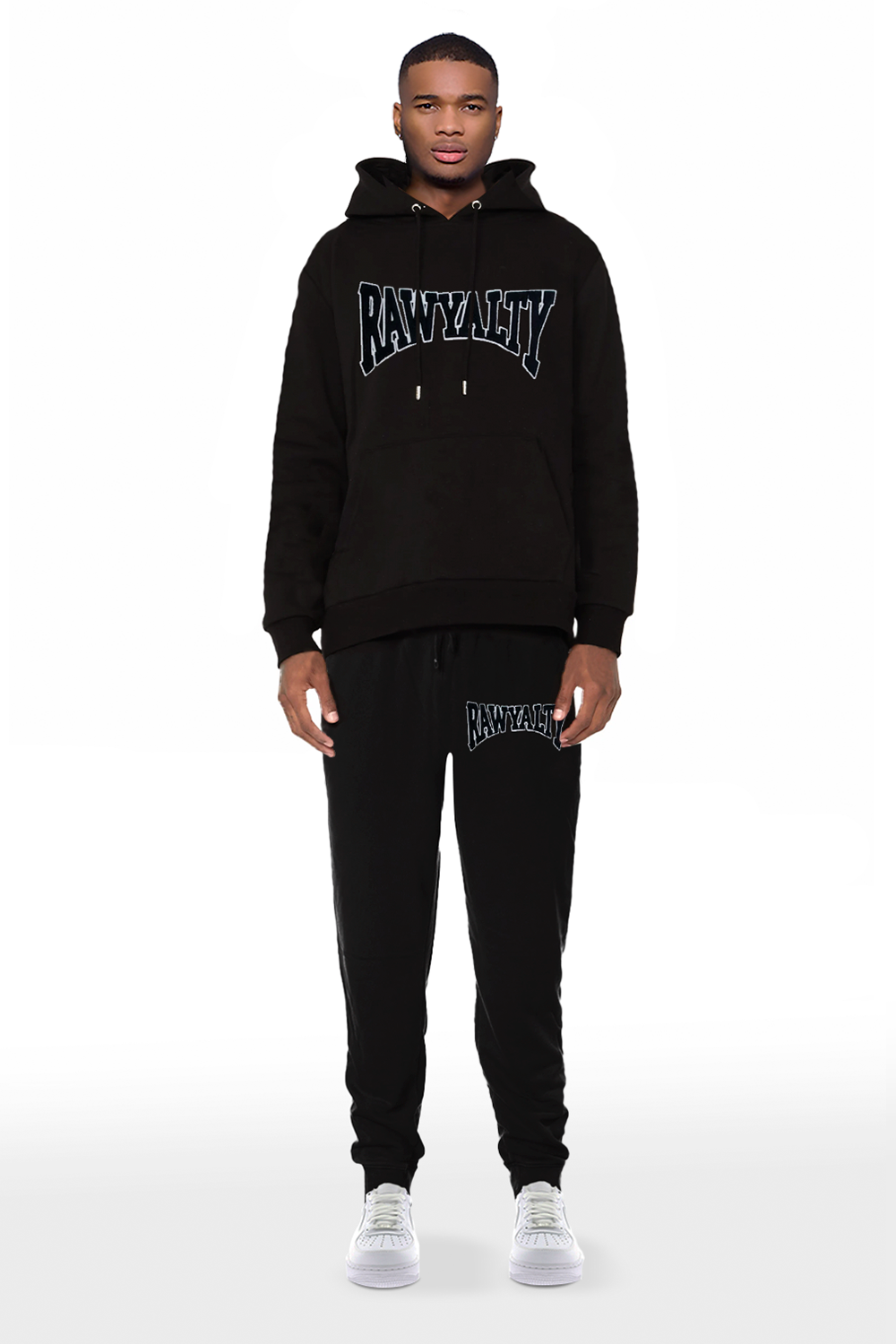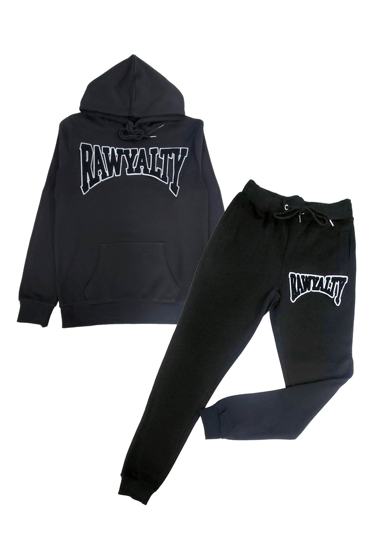 Men Rawyalty Black Chenille Hoodie and Joggers Set