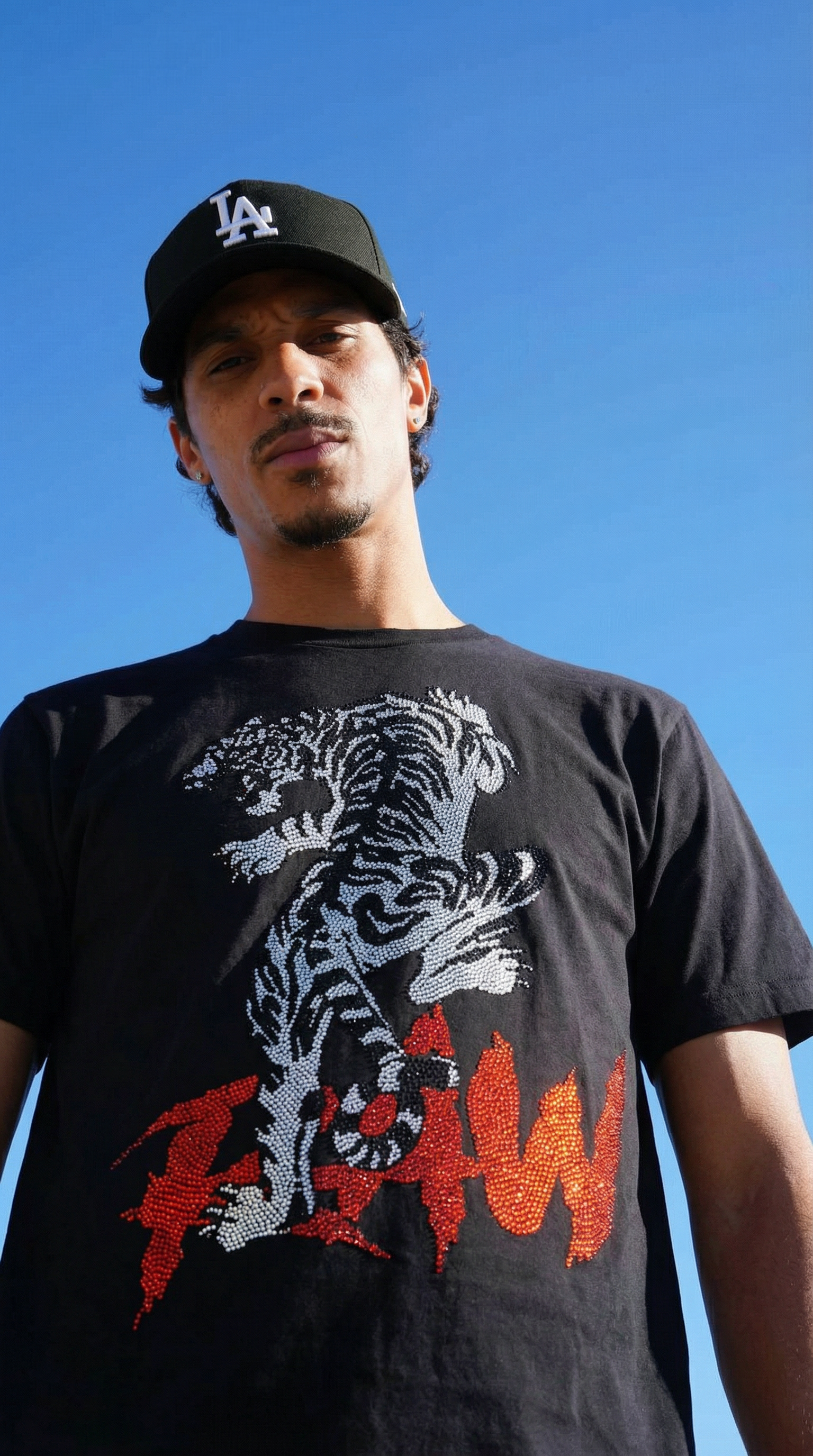 Men Tiger Cursive RAW Red Bling Crew Neck T-Shirt