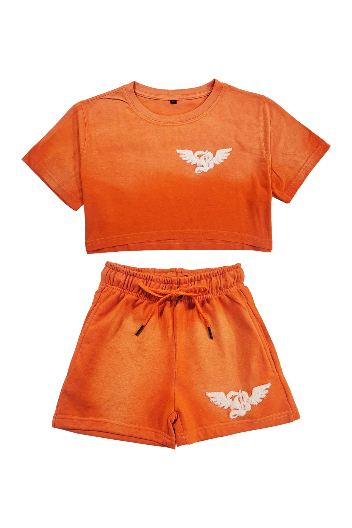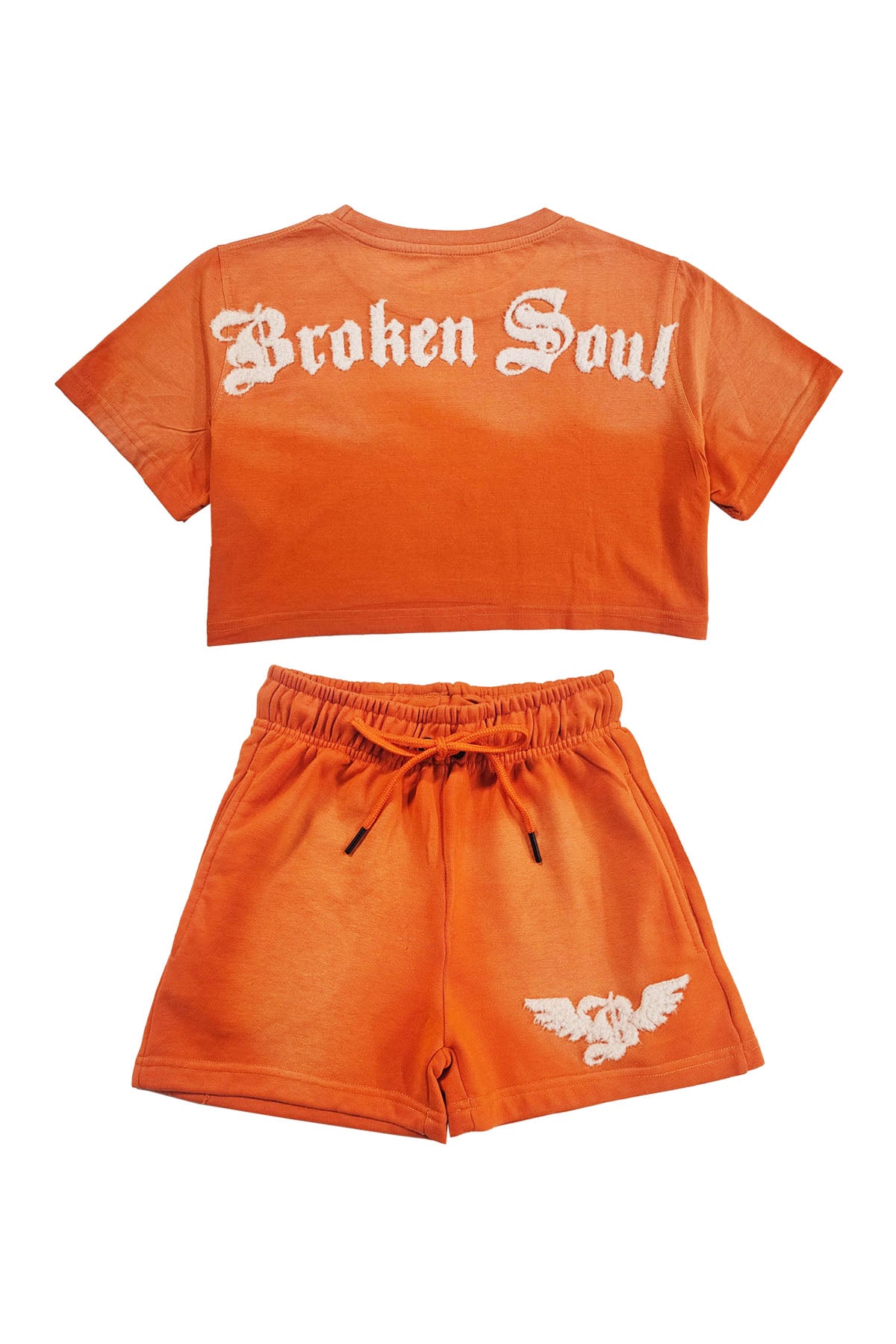 Women Broken Soul Cream Chenille Cropped T-Shirts and Cotton Shorts Set