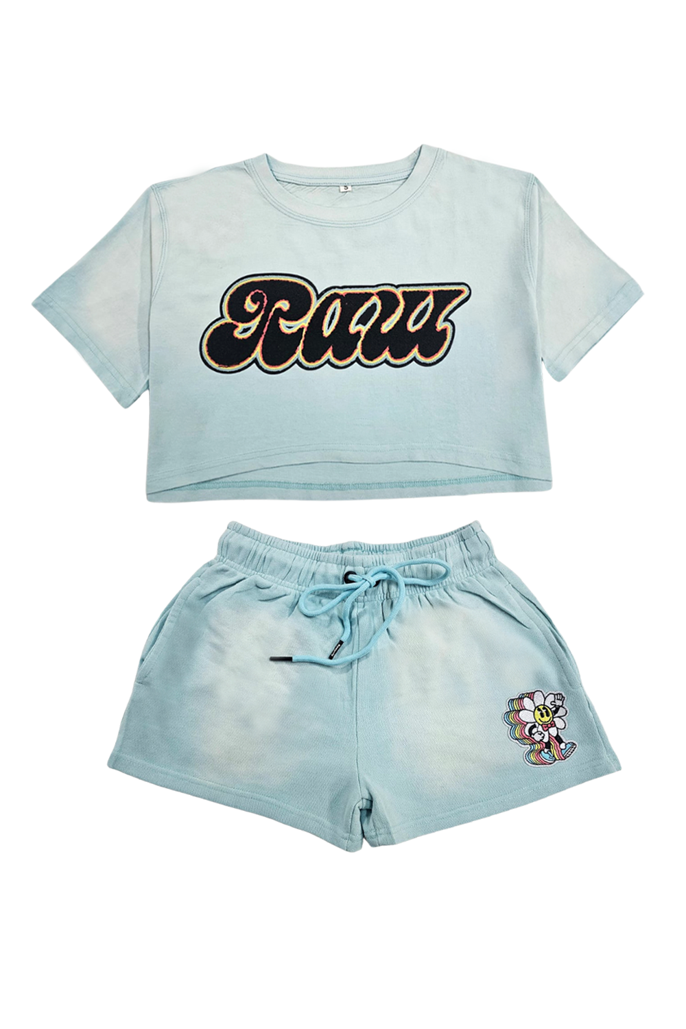 Rawyalty Women Crop Set with original graphic artwork on back