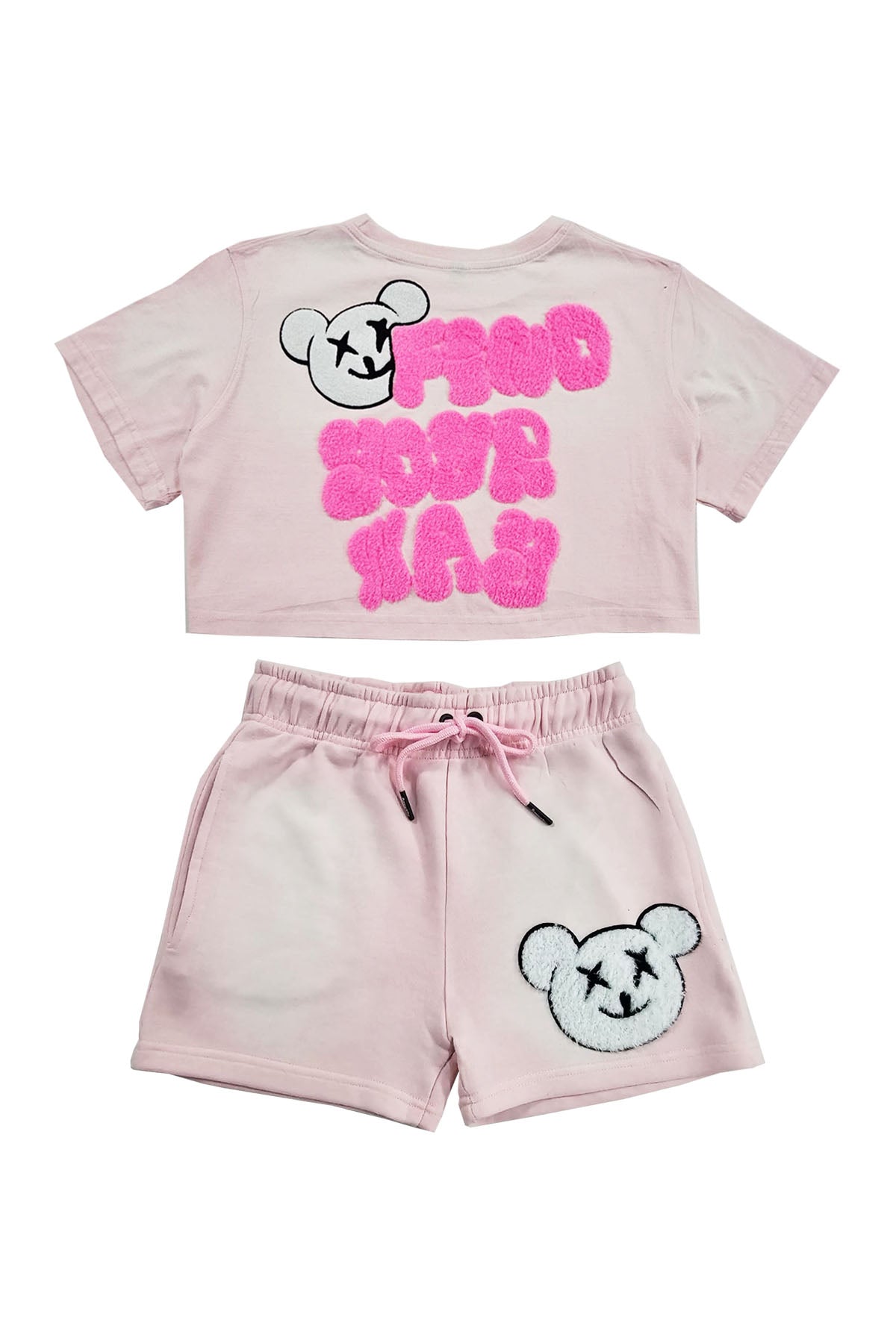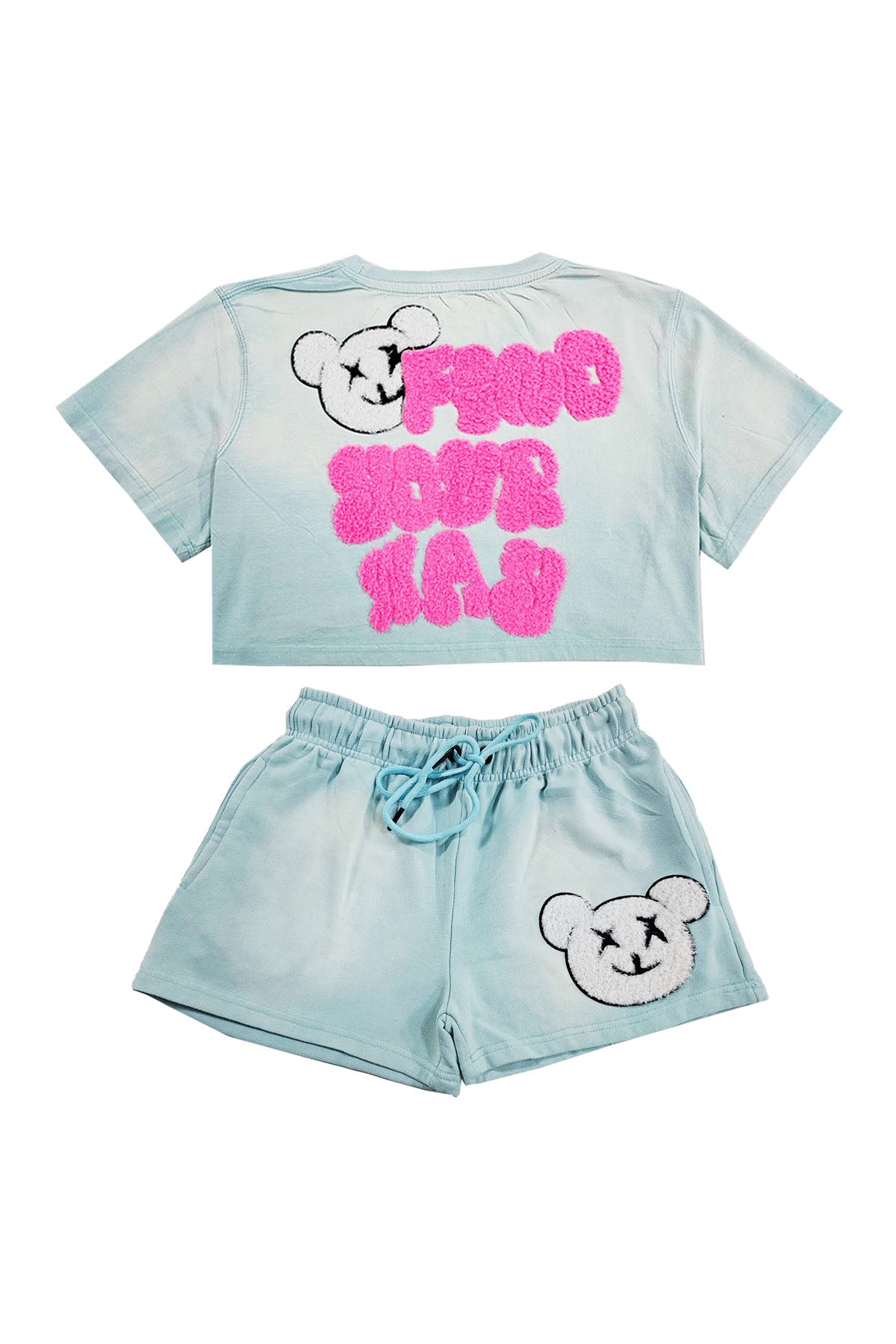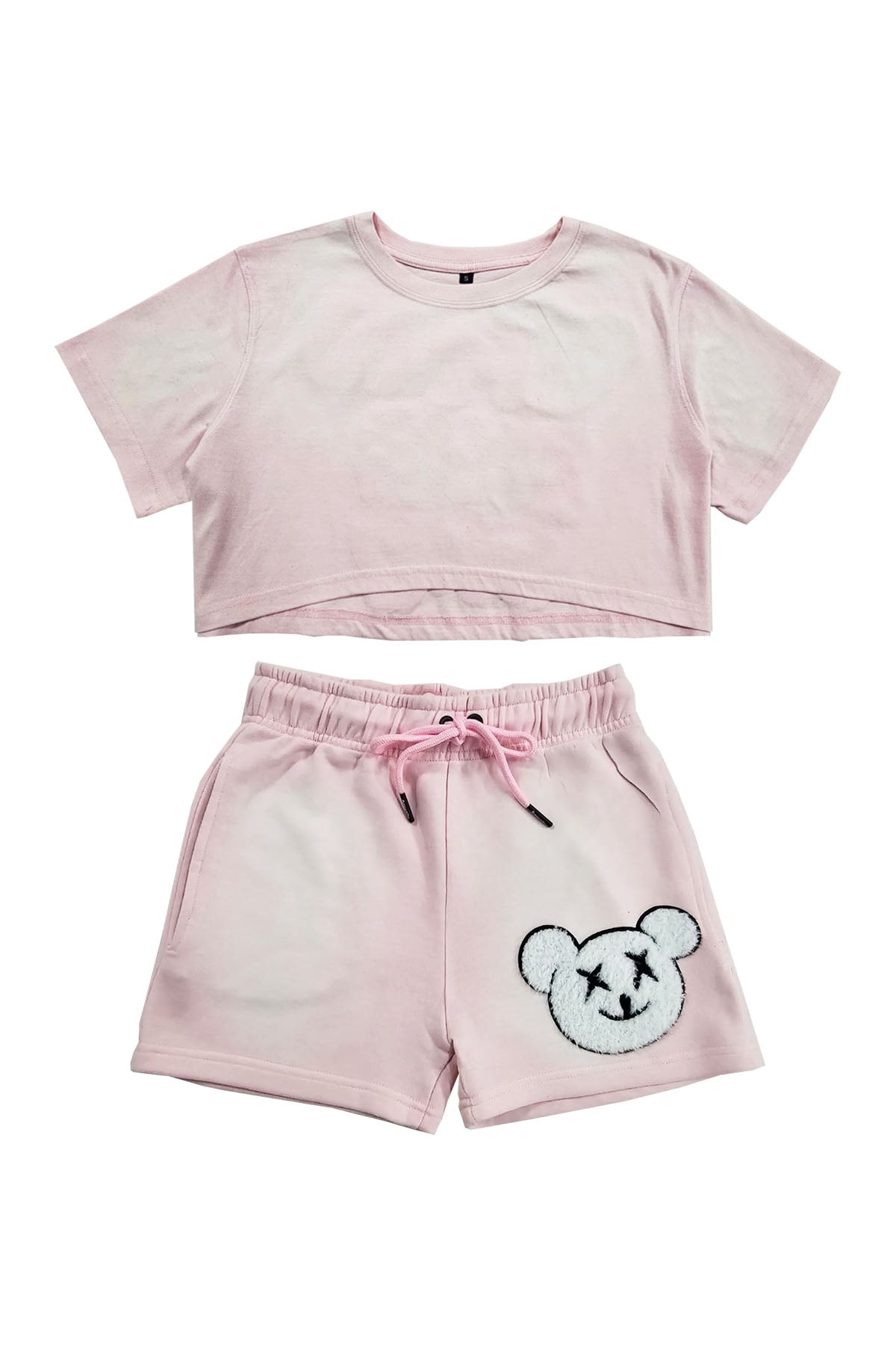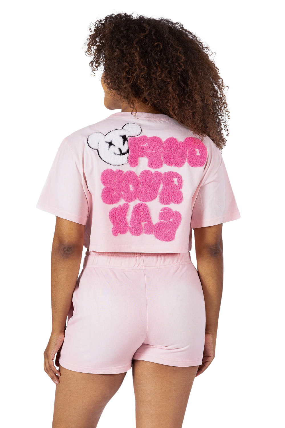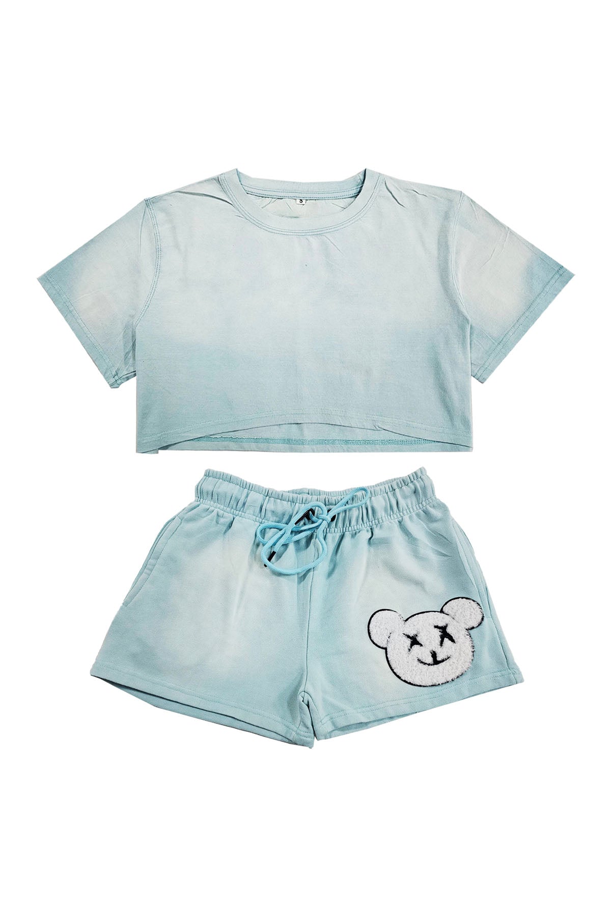 Women Find Your Way Chenille Cropped T-Shirts and Cotton Shorts Set